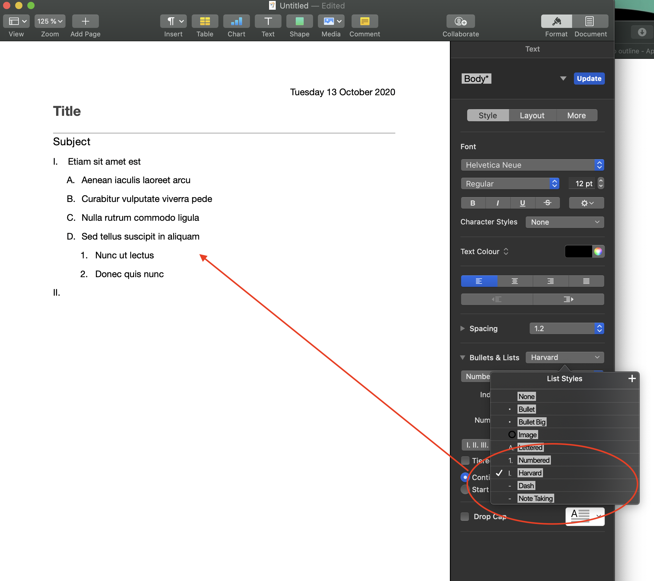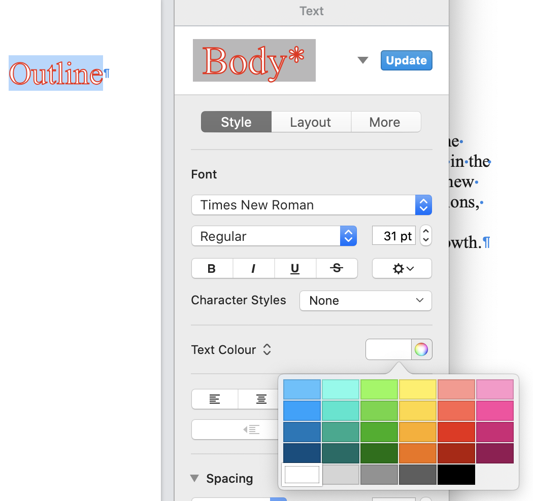 I have used Word for years, but am trying out Pages. Can't find out how to use Outline format.
