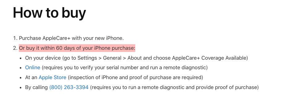 Can I sign up for Apple care after 60 days of buying my phone ?
