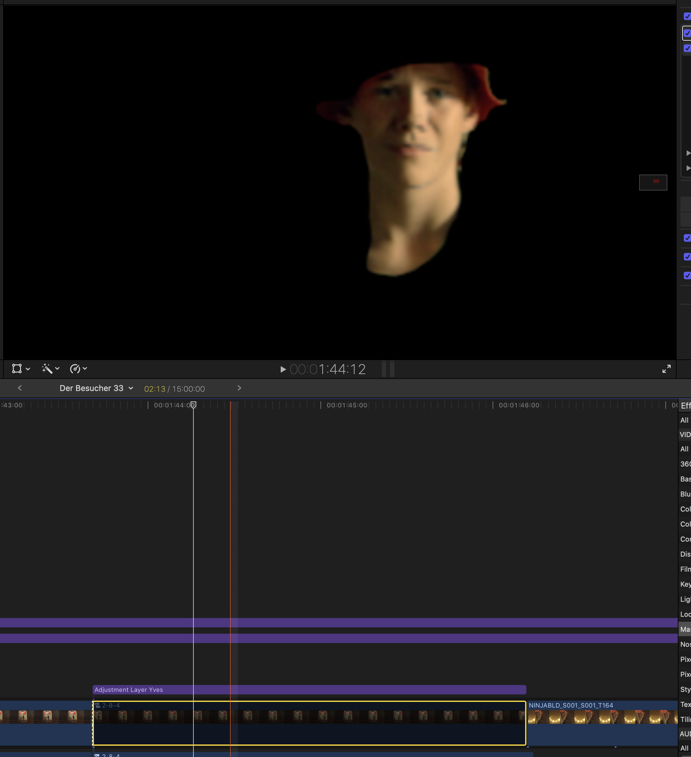 a moving face is overexposed. Trying to correct that made a draw mask over the length of the clip along several keyframes.