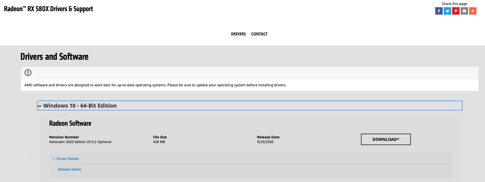 I have the same issue - it seems Apple and AMD need to update their drivers for the Apple AMD cards (you can only download those drivers from the AMD website - the other more recent drivers won't recognise your hardware. So the only solution is to beg/pester Apple to update their AMD drivers.