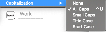 Here is how my All Caps menu item appears after setting it to control-U per paragraph 2.