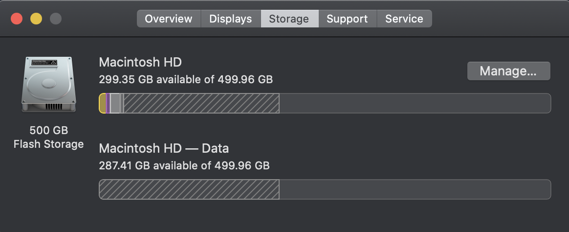 Under 'About This Mac' my storage indicates that the deleted files are still there, somewhere in the grey diagonal lines.