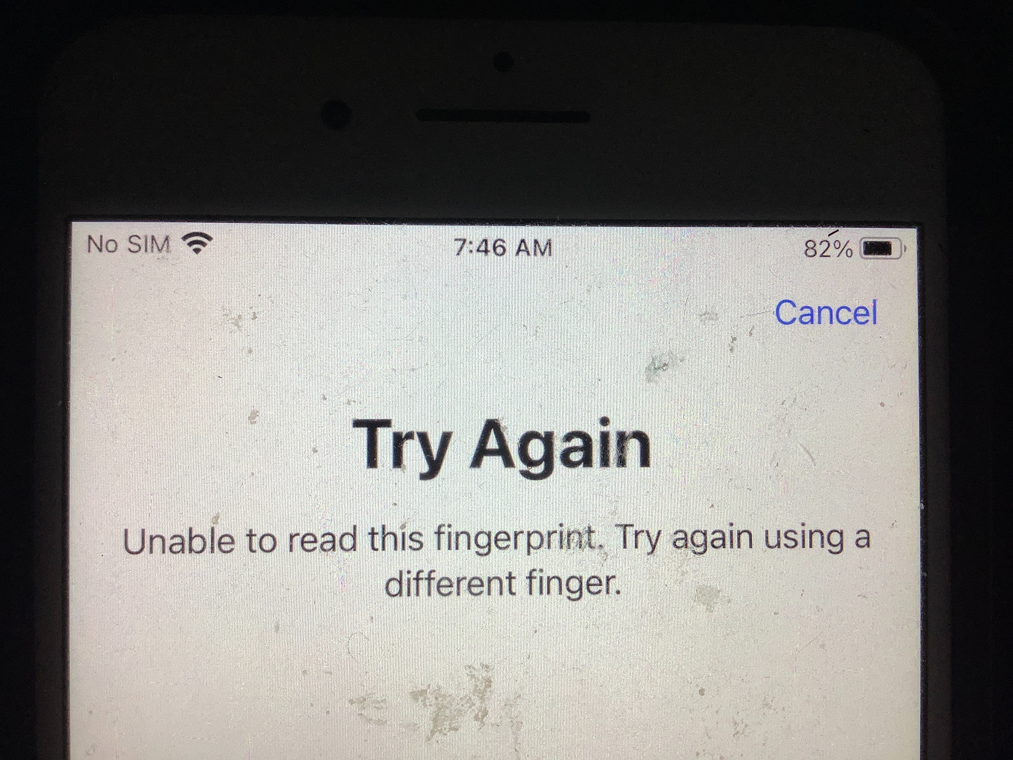 Try again unable to read this fingerprint try again using a different finger on Touch ID
