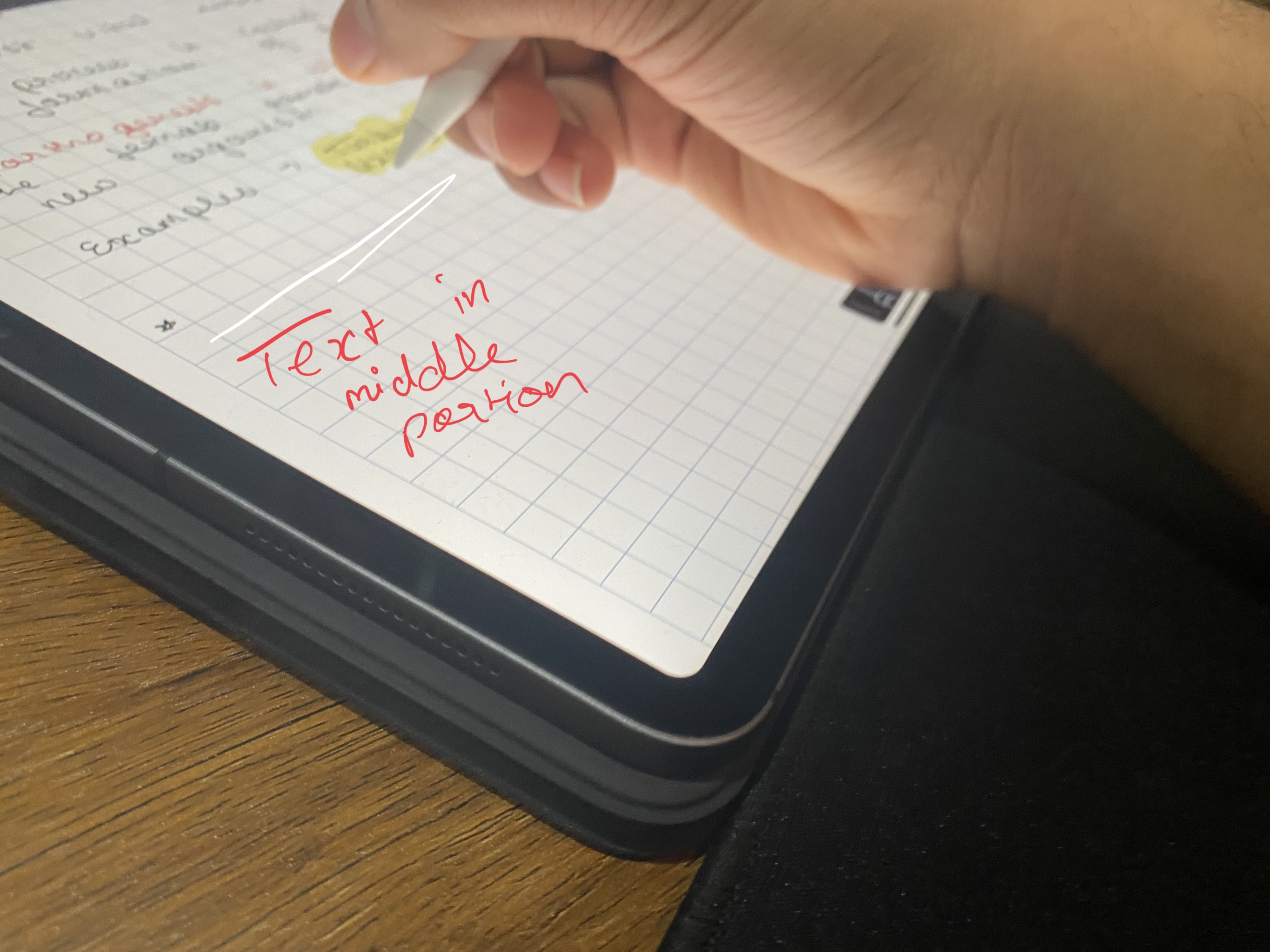 - holding the metal side of the iPad while writing, to see if it was a grounding issue and also removing the case while writing
