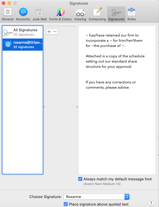 I hope someone else has seen this and can help. I really need to be able to create, name and access my signatures.
