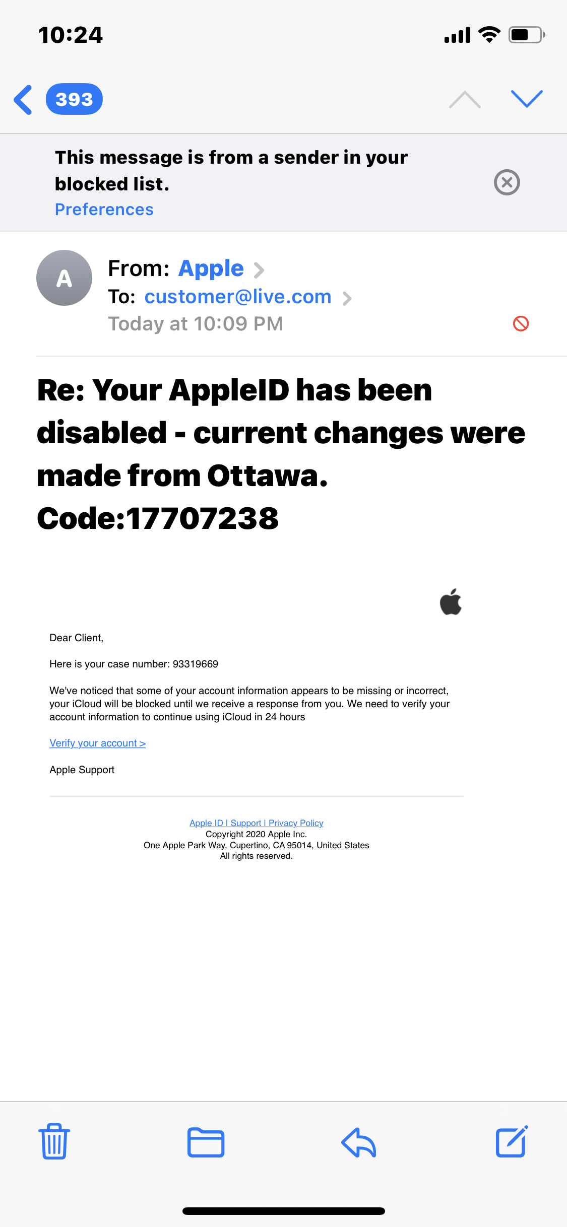 i got this spam email saying that my apple id is locked, how can i prevent this from happening again