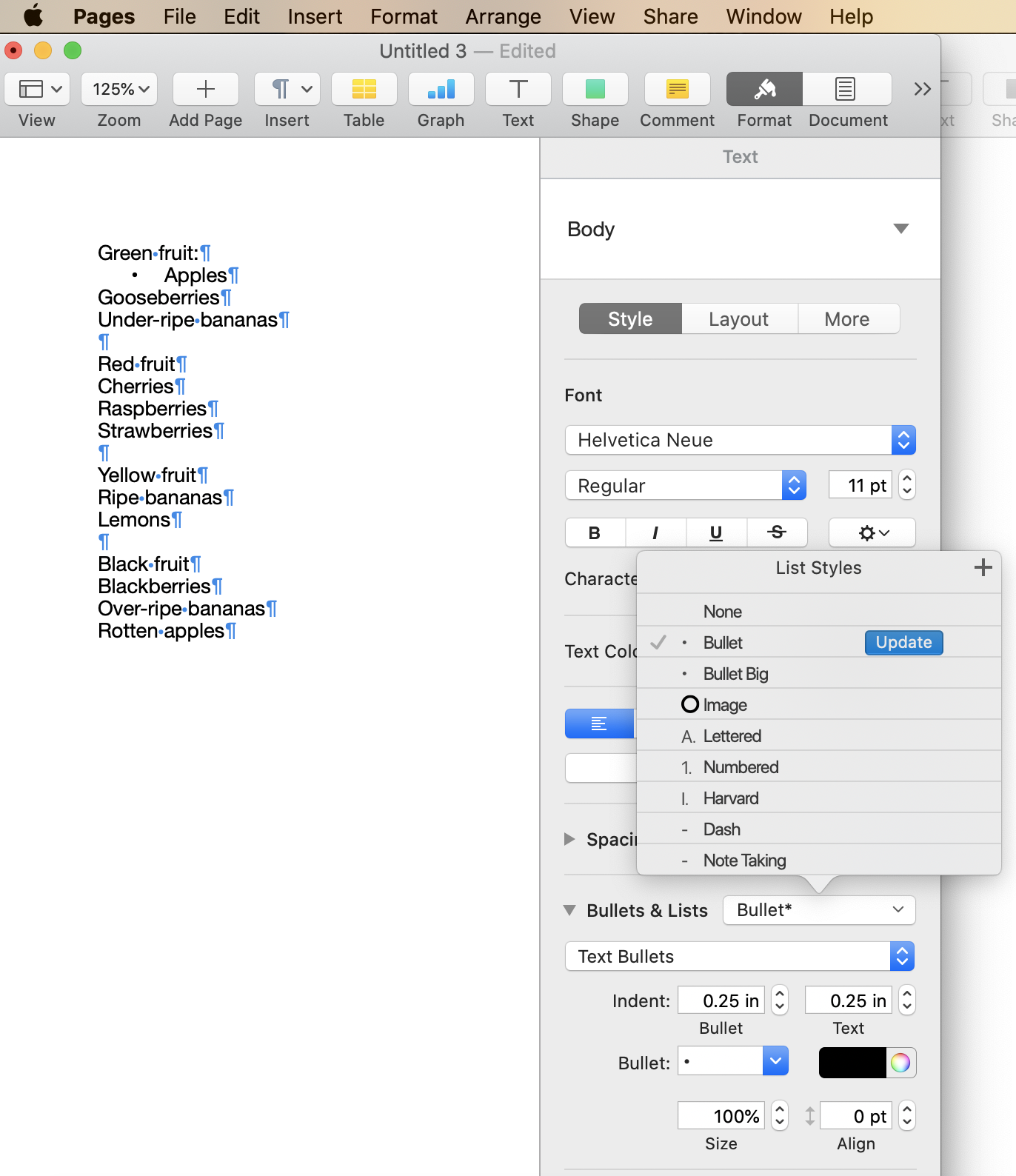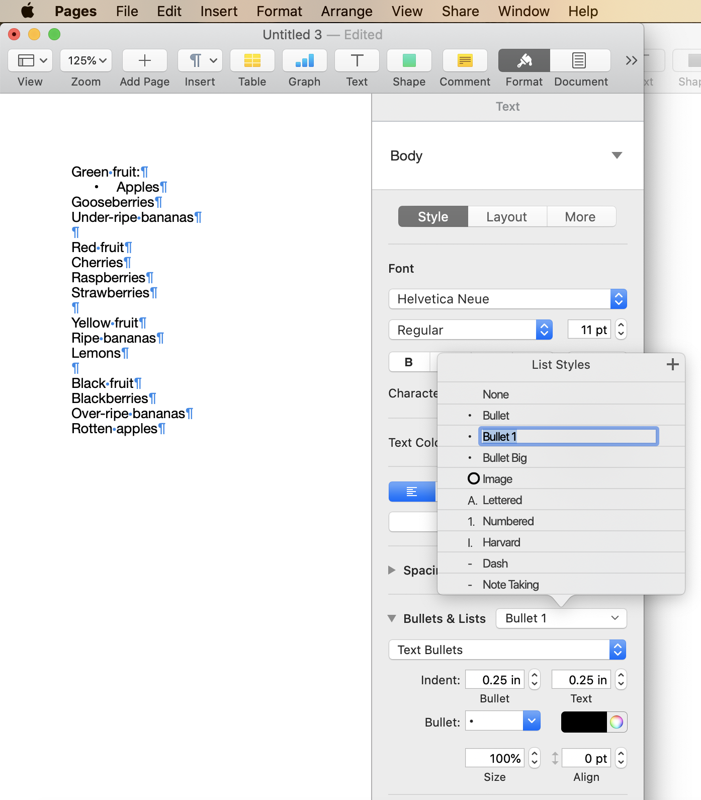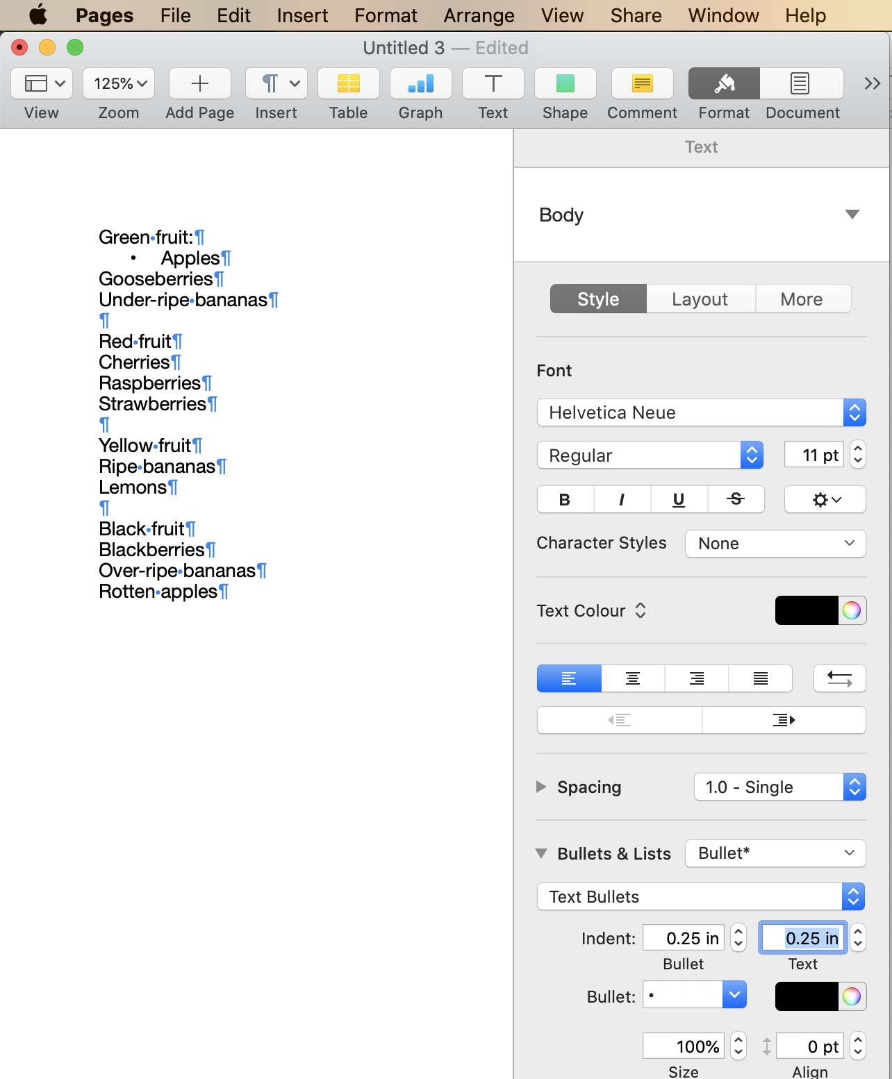 Hi, I am new at asking questions in this community, but I am not new at Pages. I have just struggled through for several years and am ready to learn more than the basic things. I want to set preferences for formatting. For instance, when I currently use bullets and lists, the lists do not indent. I want to know if I can set the number to indent .25 inch and the text to indent another .25 inch. So far I have had to indent them each time and on each page. It is really getting old!