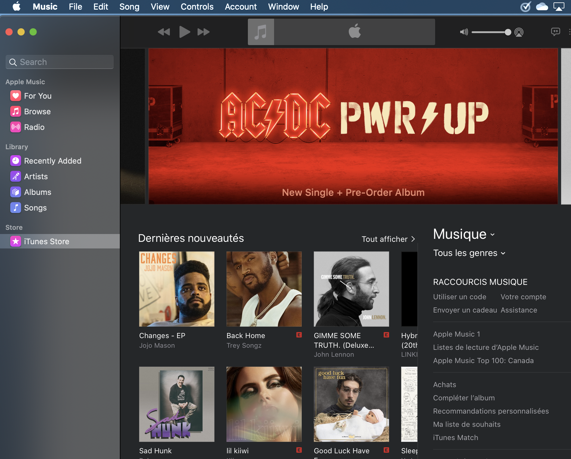 why is the language in only my music app in French? the rest of my computer is in English, and I checked settings it is in English as well. how do I change this?