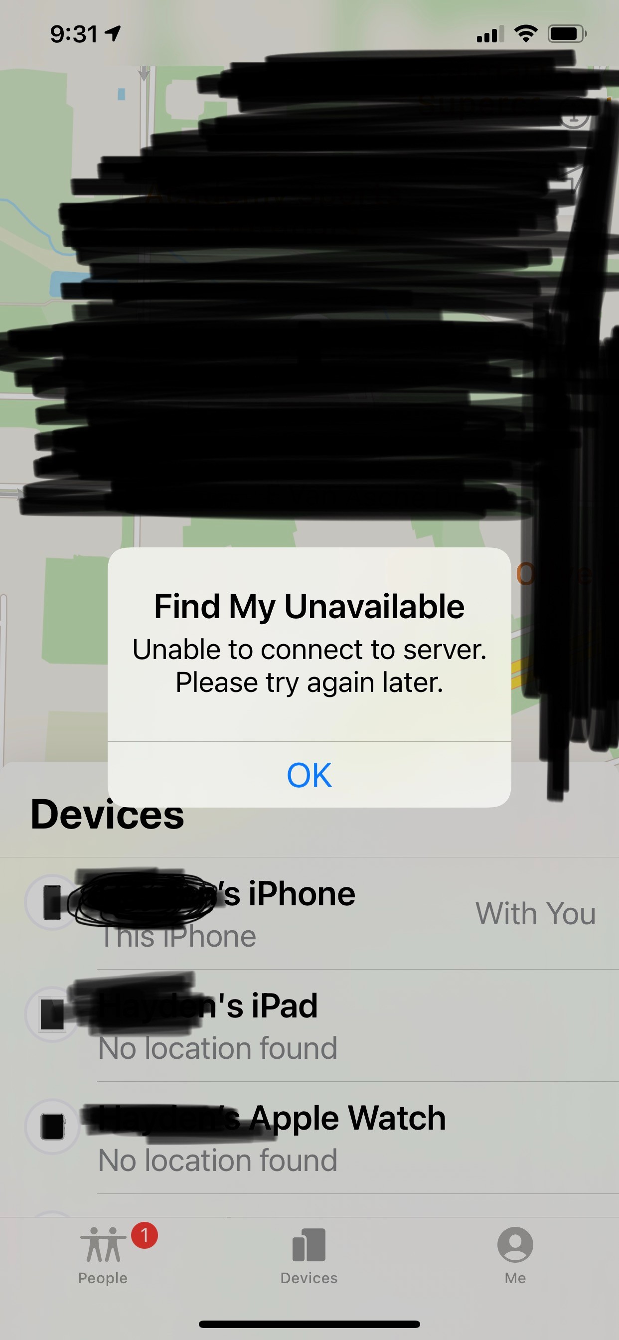 Hi everyone, I am having an issue with my XS Max on iOS 14.0.1. I get an error saying "Find My Unavailable. Unable to Connect to server. Please try again later. My devices show no location found"
