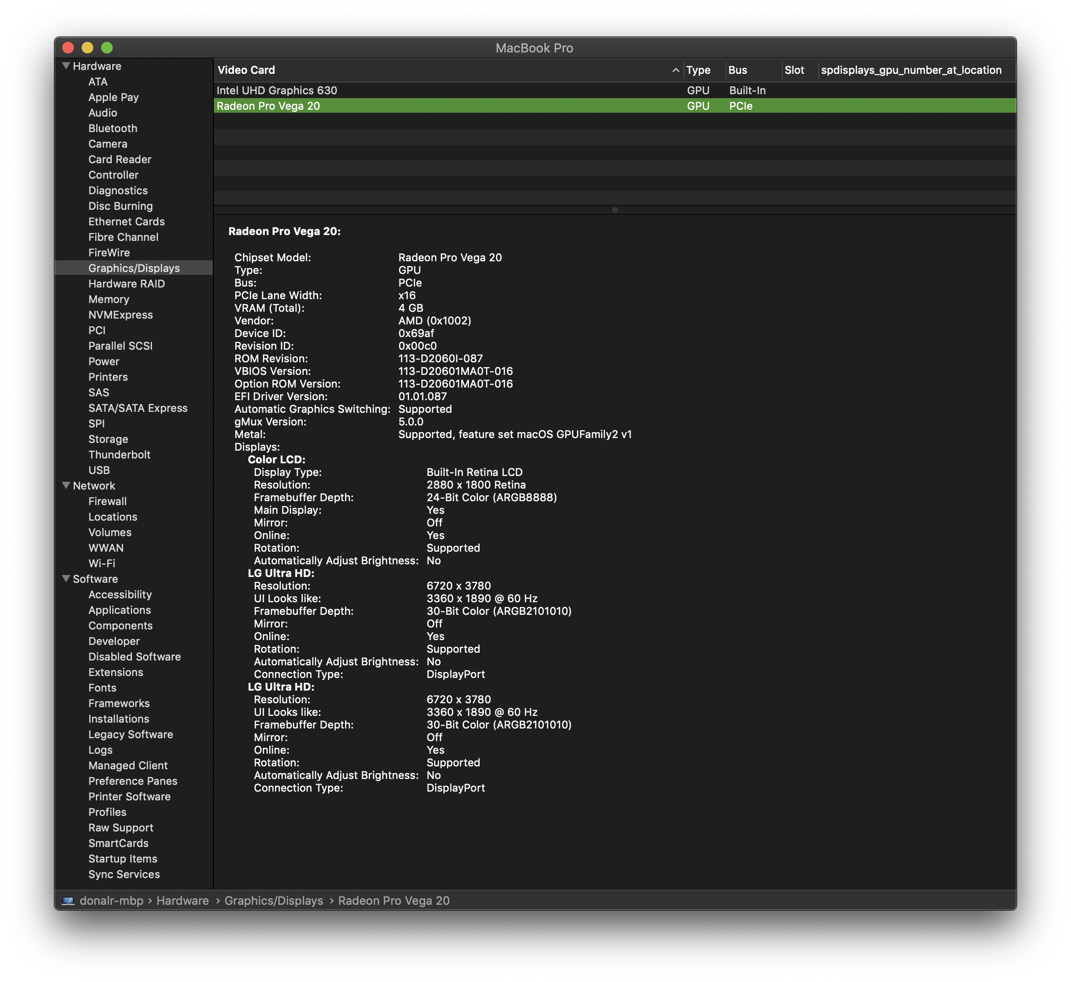 Oddly, if I have additional displays connected (like a TV to the HDMI port on the W5700X) and/or my iPad connected using Duet Display, then the two 4K displays connected often get reset to running at the correct 60Hz.