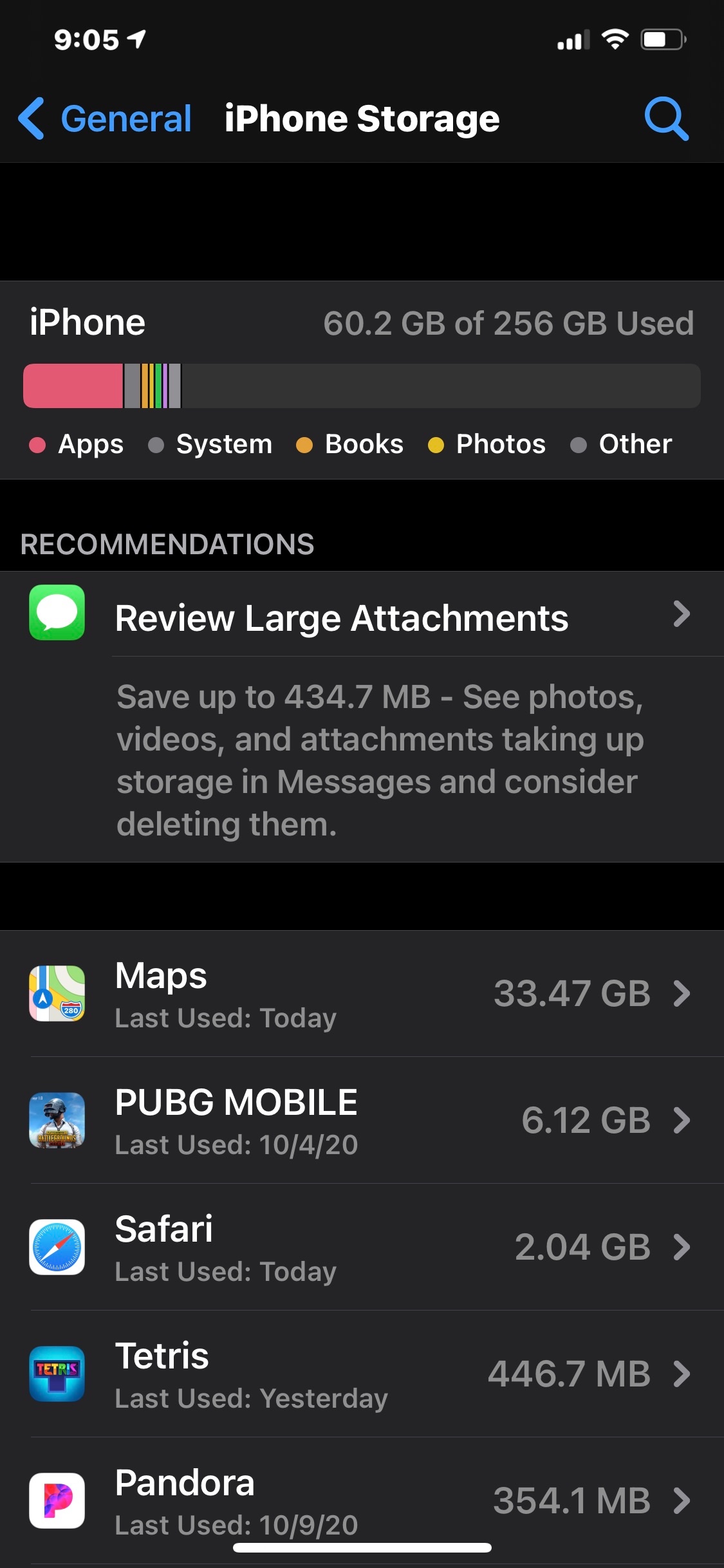 I tried to open the camera app to take a pic and got the message that iPhone storage was full and I could not take any more pics. I reviewed the storage being used by apps and Maps was using a whopping 32 GB and I could find no way to reduce that storage.