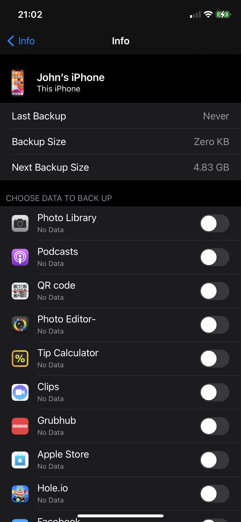 ***** When I delete my backup, the “Next Backup Size” becomes something like 4.8 GB.