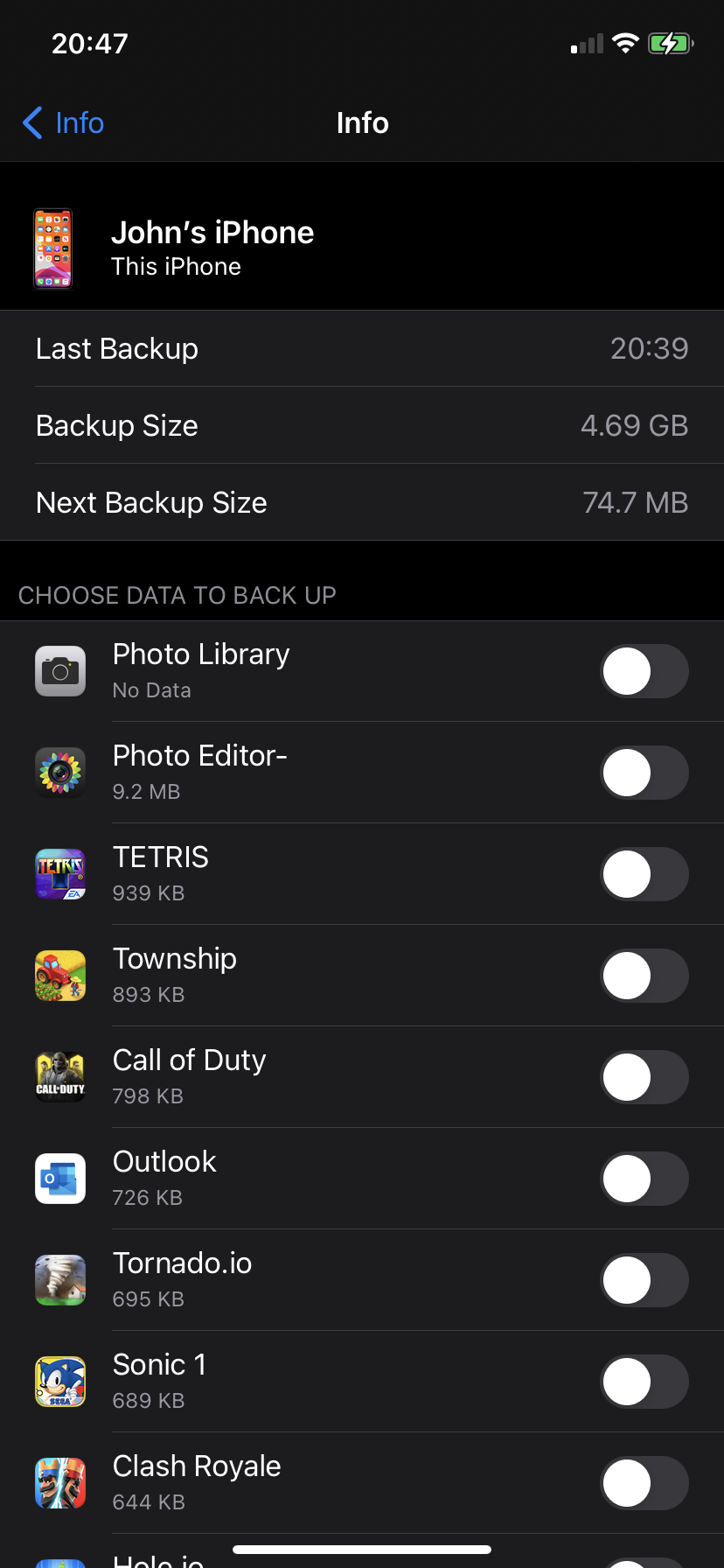 ^ This article touches on how the backups work but does not explain why my purple backup bar is so large when I have nearly everything unchecked to be backed up to the iCloud.