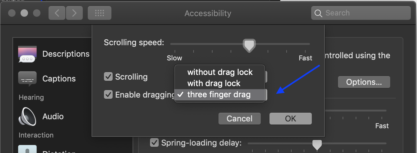 Three finger drag seems to have disappeared as an option. It is not available in teh trackpad preferences or in the accesibility preferences as described in the article above. Can I get it back another way? I use this a lot.