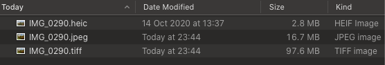 I don't understand why this process has been so frustrating and complicated but I would really appreciate any help. I'm trying to export pictures/videos from Photo Library (on Mac) to my external hard drive (240 gb). On my iPhone all my pictures/videos take up 31 gb (6,545 photos, 1,229 videos). After an hour of all the items exporting, it gave me an error that 1 thousand items couldn't export. I noticed that there was no space left on my external hard drive so I know thats why it didn't finish. My question now is, why did the photos/videos that took up 30 gb on my iPhone turn into 150 gb on my Mac? I exported them as TIFF, which I thought was suppose to take up less space so I'm confused... Please, this is driving me crazy. I think I need to buy a whole new external hard drive.