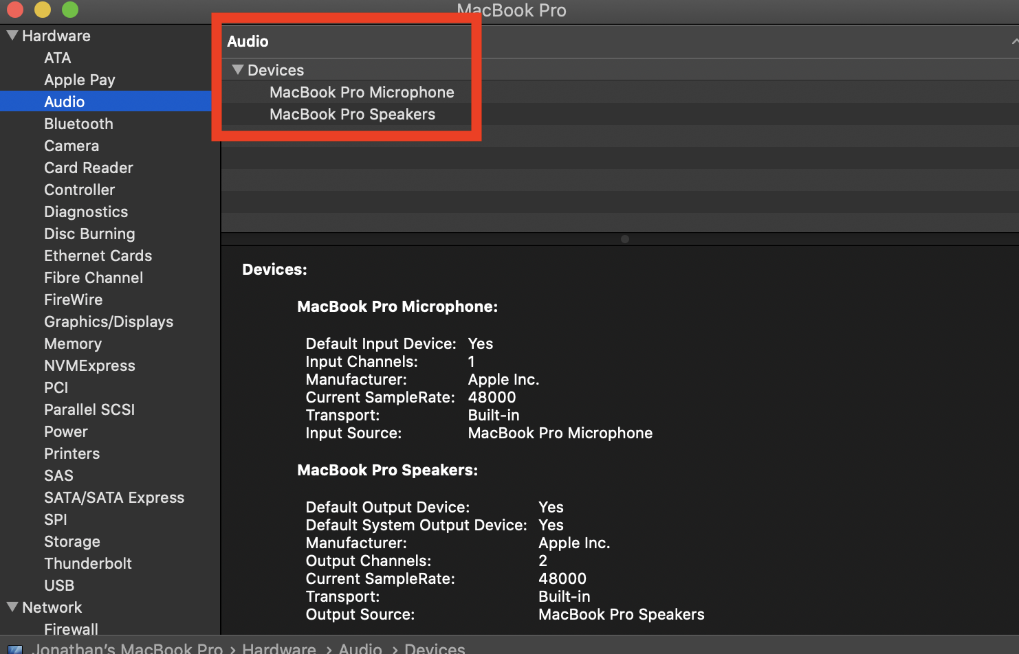 4. Look For: MacBook MacBook Microphone on the right-half of the window.