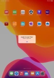 I just bought an iPad Pro and I am unable to install files. It says unable to install Files. Please try again later. It’s also doing the same thing in my iPhone.