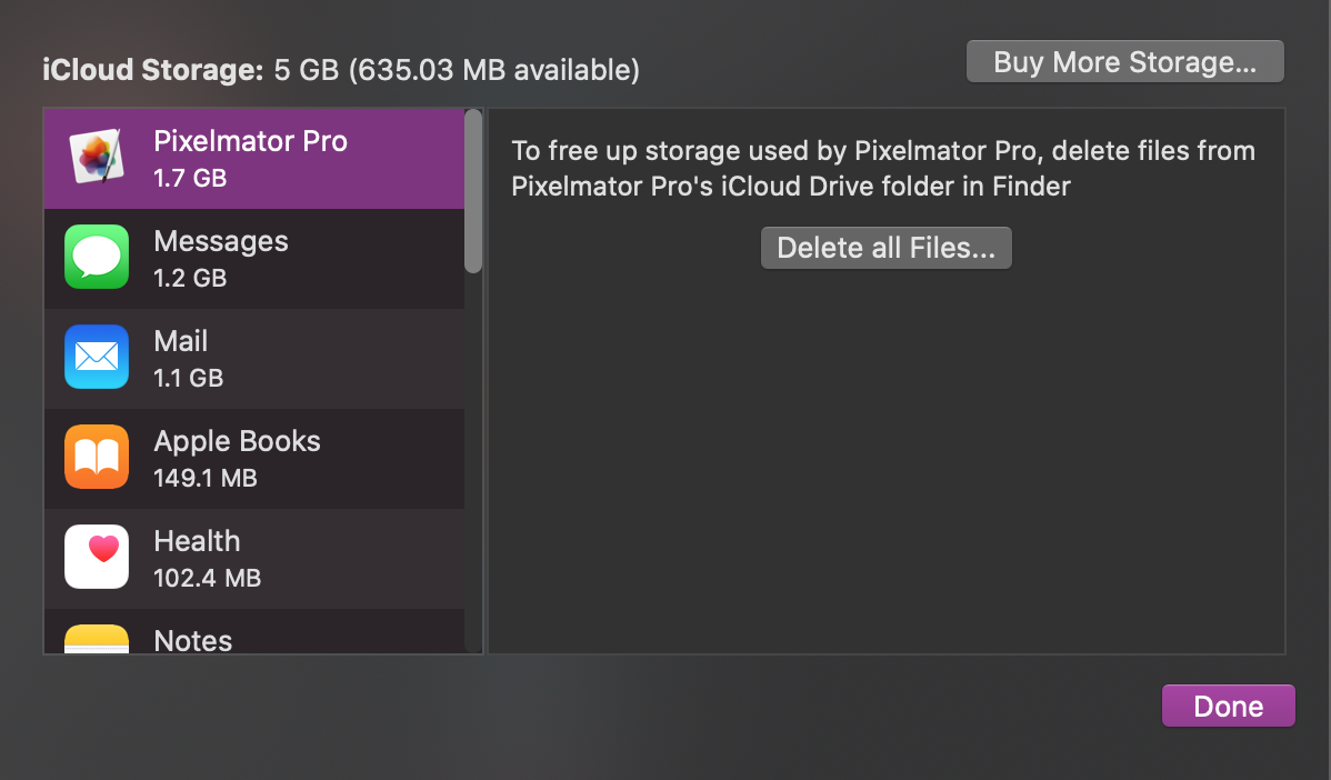 I’m trying to clear space in my iCloud and Pixelmator Pro is eating up 1.7GB. But whenever I try to delete the files off iCloud I get the error message that the data & files cannot be deleted. And to try again later.
