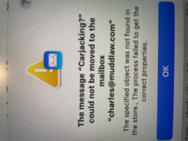 Then, deleting from the Mac inbox would sync but not from server to Mac. And, when I went to delete that email on the Mac, I received the error below.
