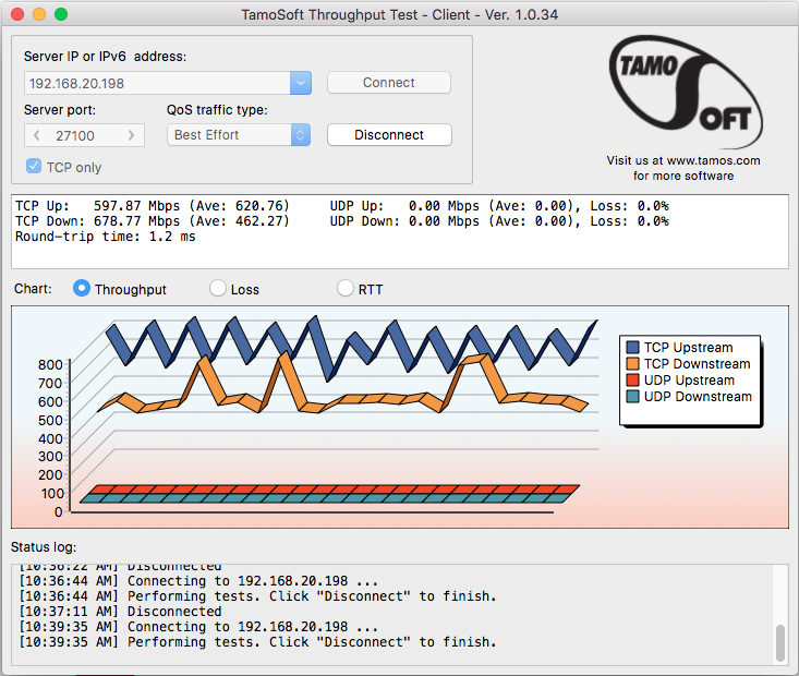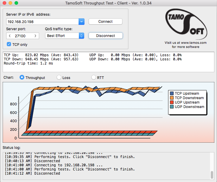 The standard test software is iperf but this is hard to use.. so a suitable alternative like tamosoft free LAN test software will work great. And is available for Mac, Windows as well as android and iOS.