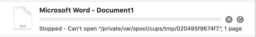 That’s what was preventing me from printing too, the “Stopped - Can’t open” error, too. But that was solved by what I described.