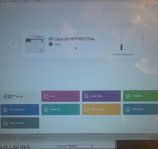 Just tried to print to my HP Color LaserJet Pro MFP M277 dw and got a message pop up on my iMac