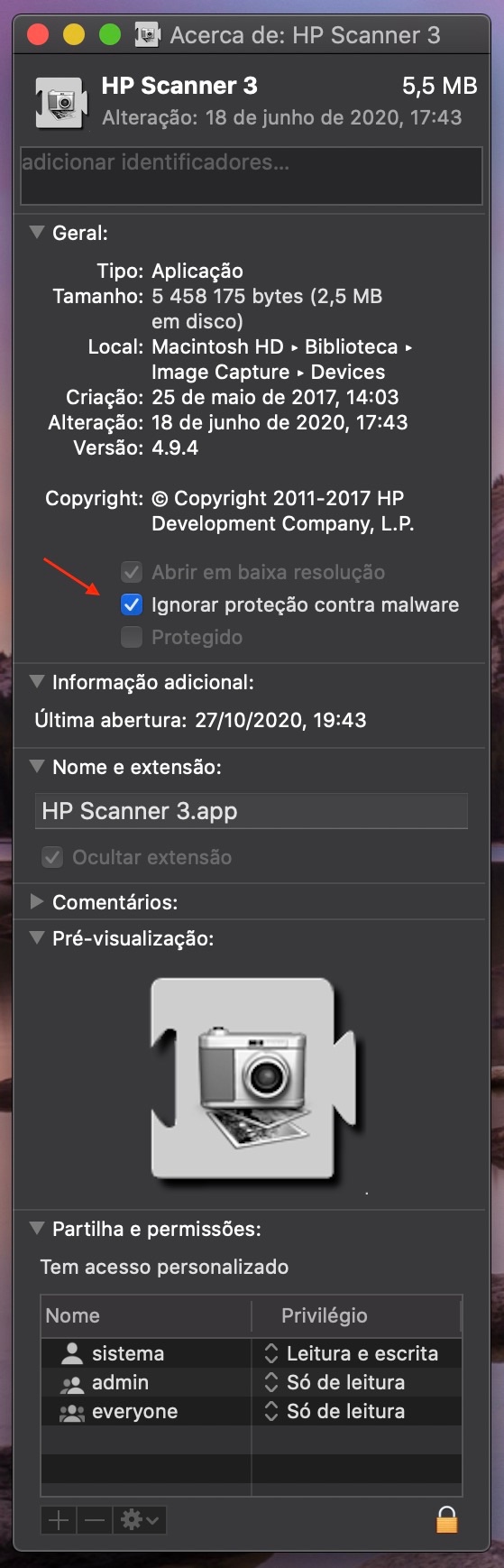 C. When the installer completes, go to System Preferences > Printers & Scanners, highlight the HP printer and remove it. Then add it back. This is necessary because otherwise it will continue to use the now unsigned drivers and it will appear that the problem has not been fixed. Apparently installing the update does not remove the old drivers.