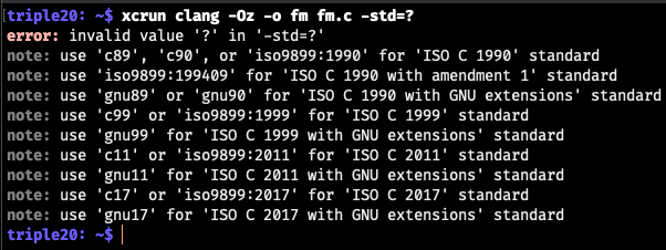 ANSI C compiler available for MacOS?....I used xCode to learn Swift... I just updated xCode after installing Catalina a month ago, but it's saying there is no compiler. I'm working a new hobby that requires some code in C. How can i verify a C compiler in on my Mac... or can I download from Apple?