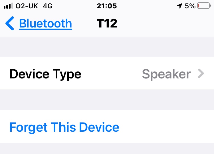 settings/ bluetooth/ (find your device) click on info tag at right/