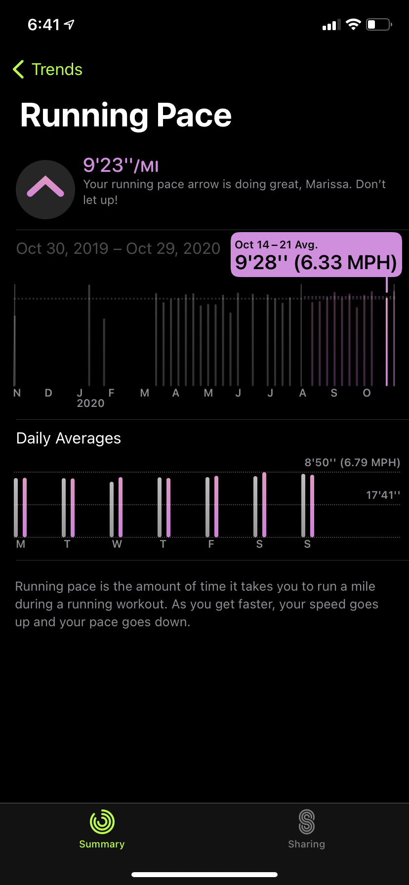 When I click on Trends, my running pace for October 17-24 is listed as 9’05”. When I go to workouts, my three runs during that period are 8’37”, 8’25”, and 8’35”. I also have a random