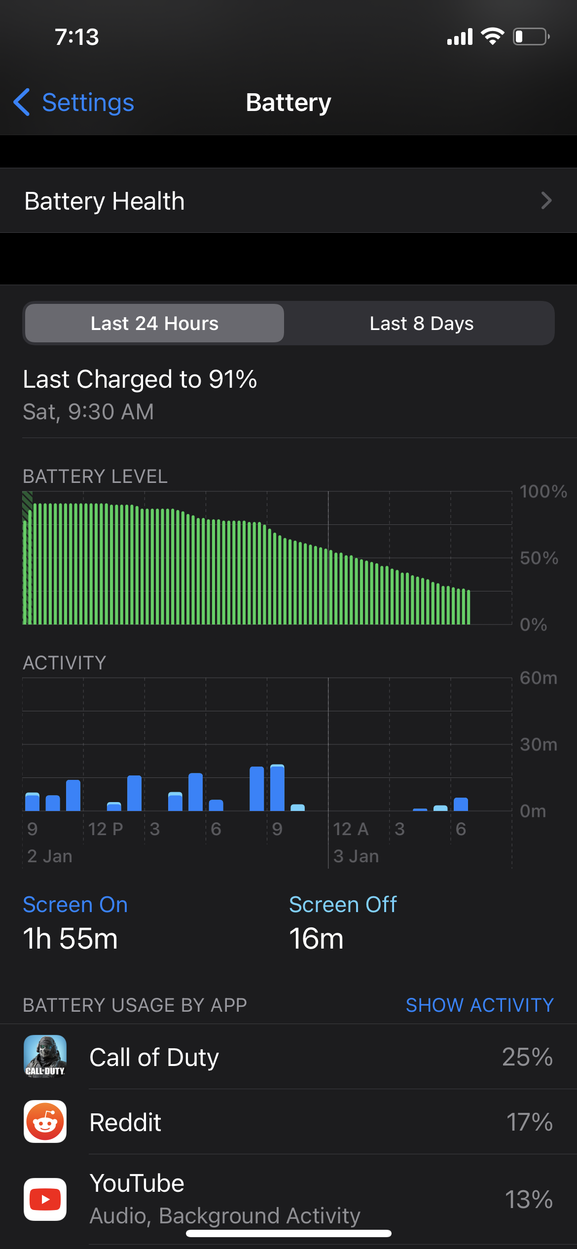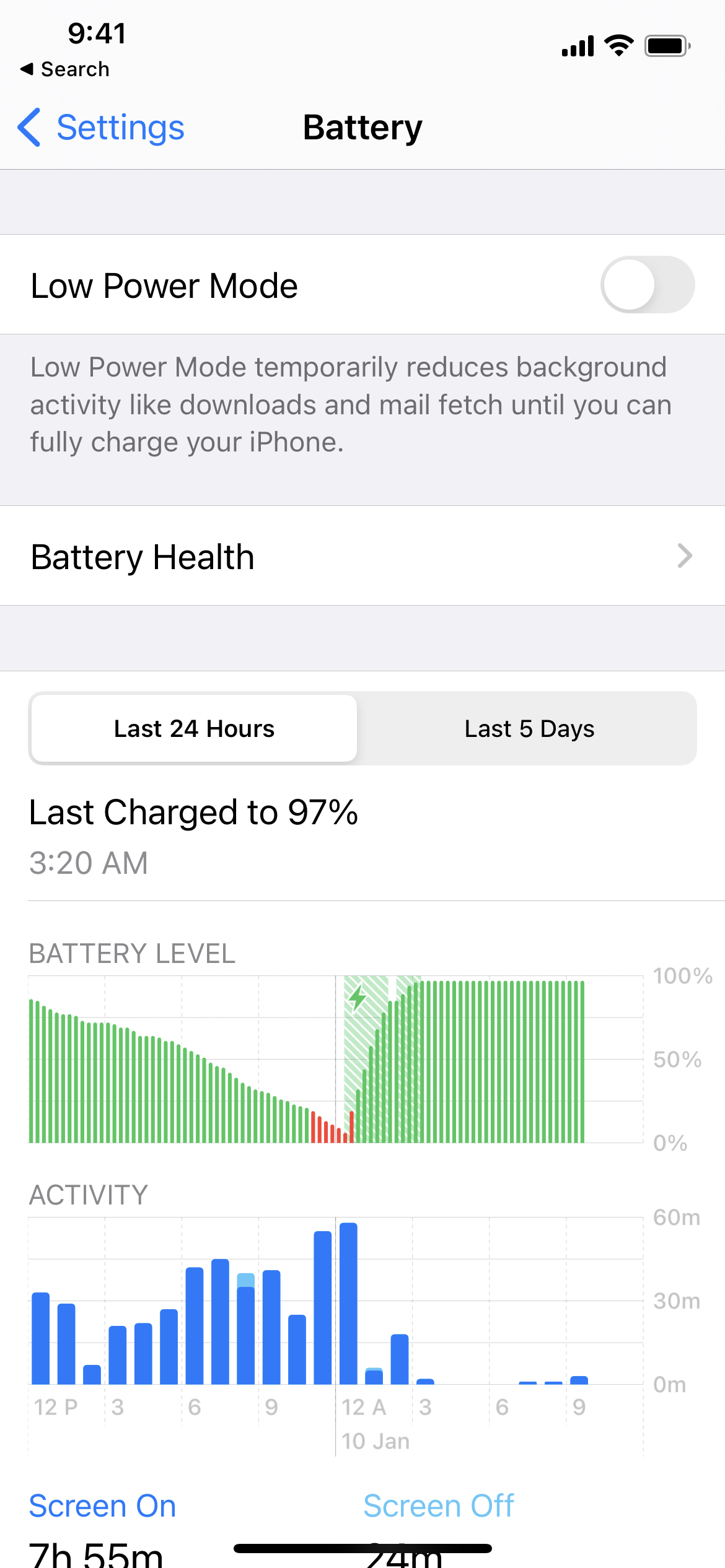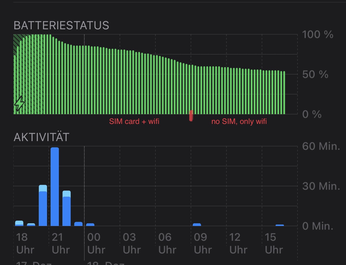 However I'm noticing that the iPhone 12 Pro is draining when idle with almost no background activity at a rate of 4% which is much faster than my previous iPhone 11 Pro, and to be honest a faster idle drain than I can actually remember from a new iPhone. First instinct was to disable Mobile data to see if it was a 5G thing, but I actually don't see any real difference from doing that (which makes sense as I've been on Wifi 98% of the time since I got it).