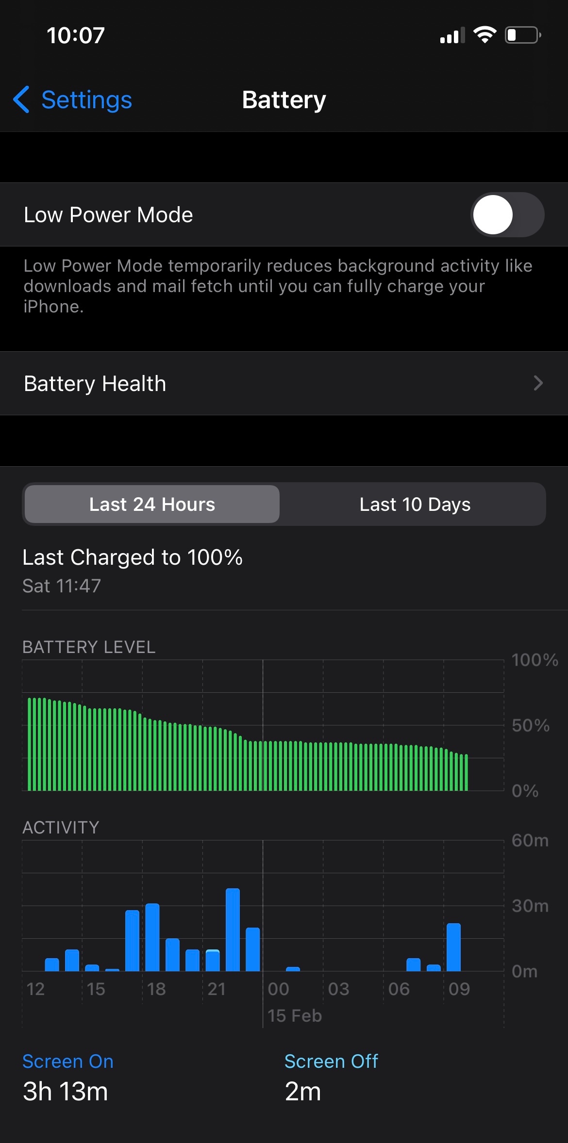 Battery drops around 10% over the same time frame (Better, but still not satisfying)
