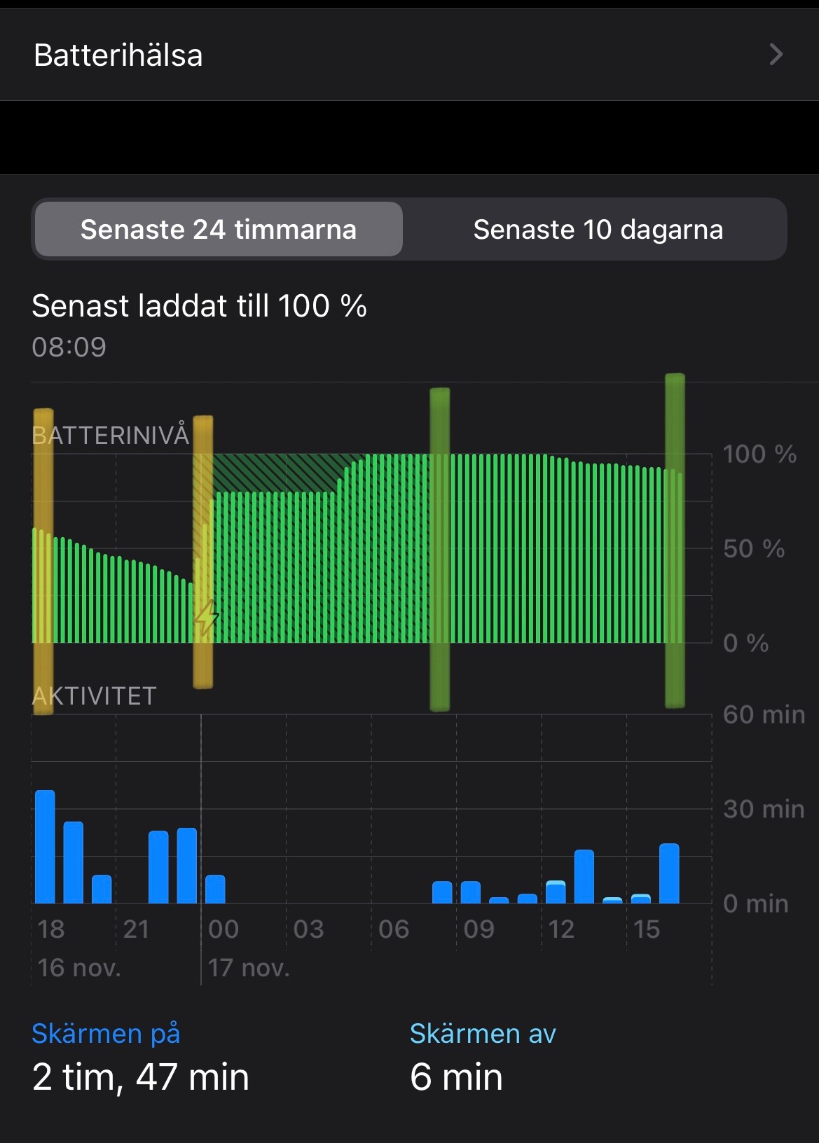 Battery drops around 10% over the same time frame (Better, but still not satisfying)