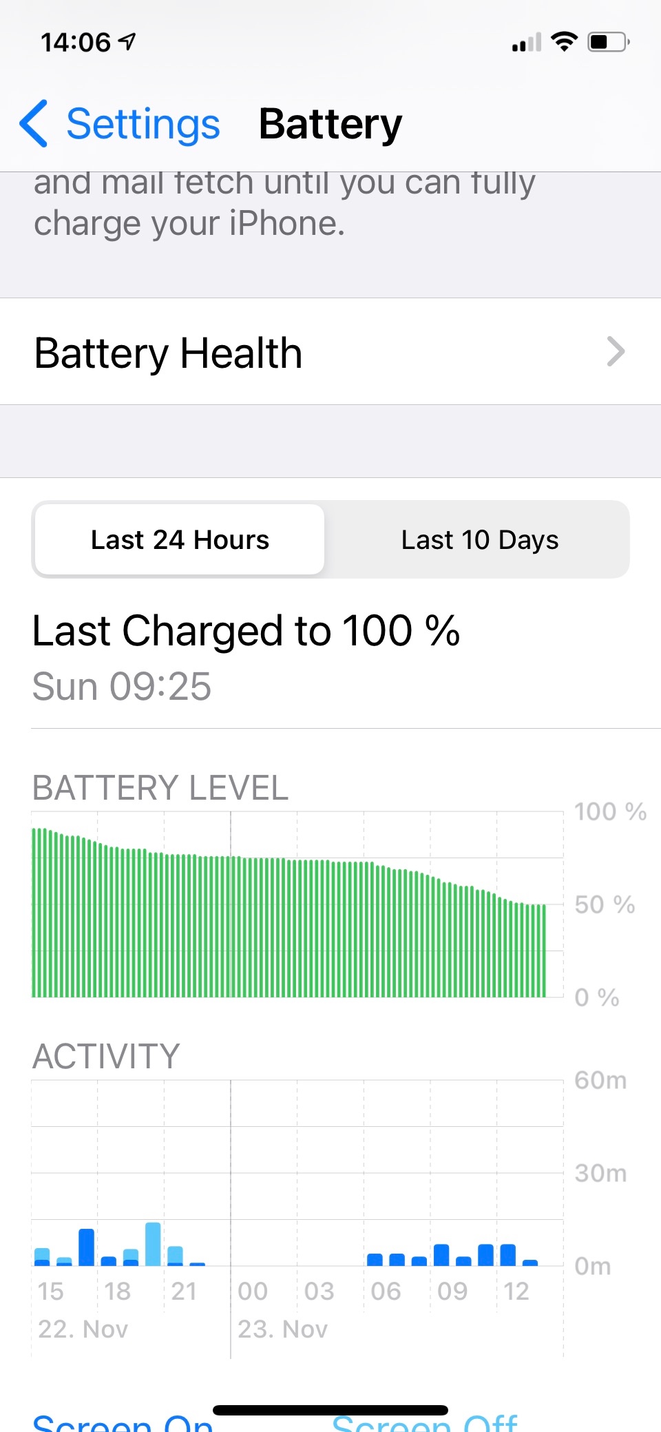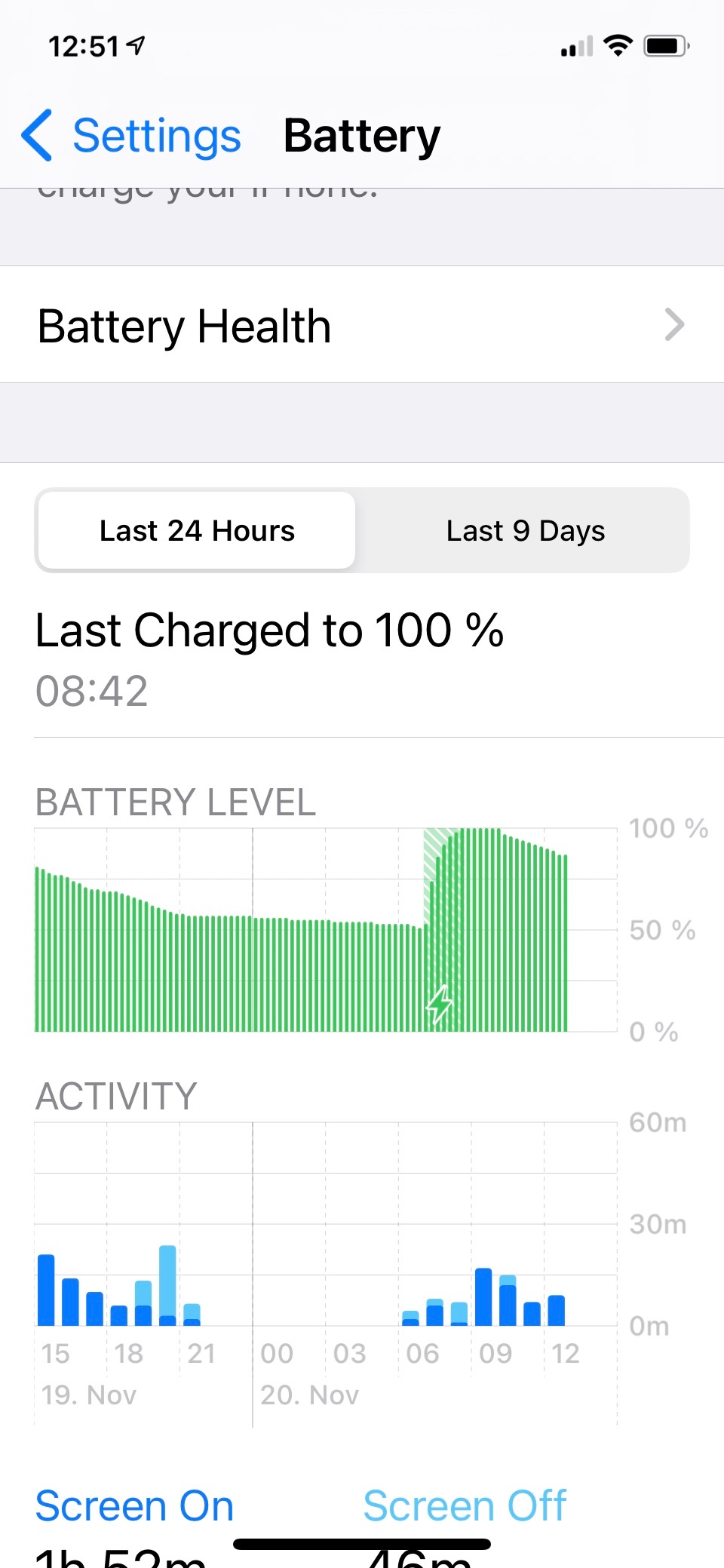 However I'm noticing that the iPhone 12 Pro is draining when idle with almost no background activity at a rate of 4% which is much faster than my previous iPhone 11 Pro, and to be honest a faster idle drain than I can actually remember from a new iPhone. First instinct was to disable Mobile data to see if it was a 5G thing, but I actually don't see any real difference from doing that (which makes sense as I've been on Wifi 98% of the time since I got it).