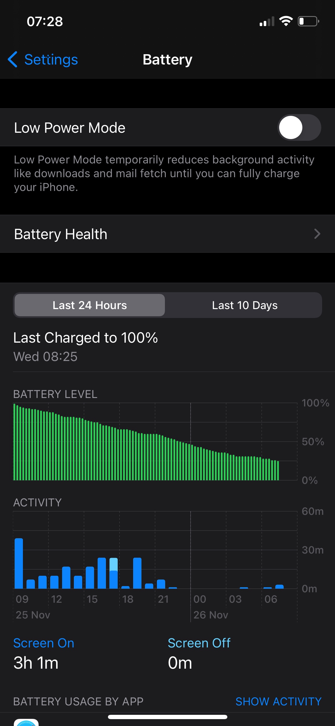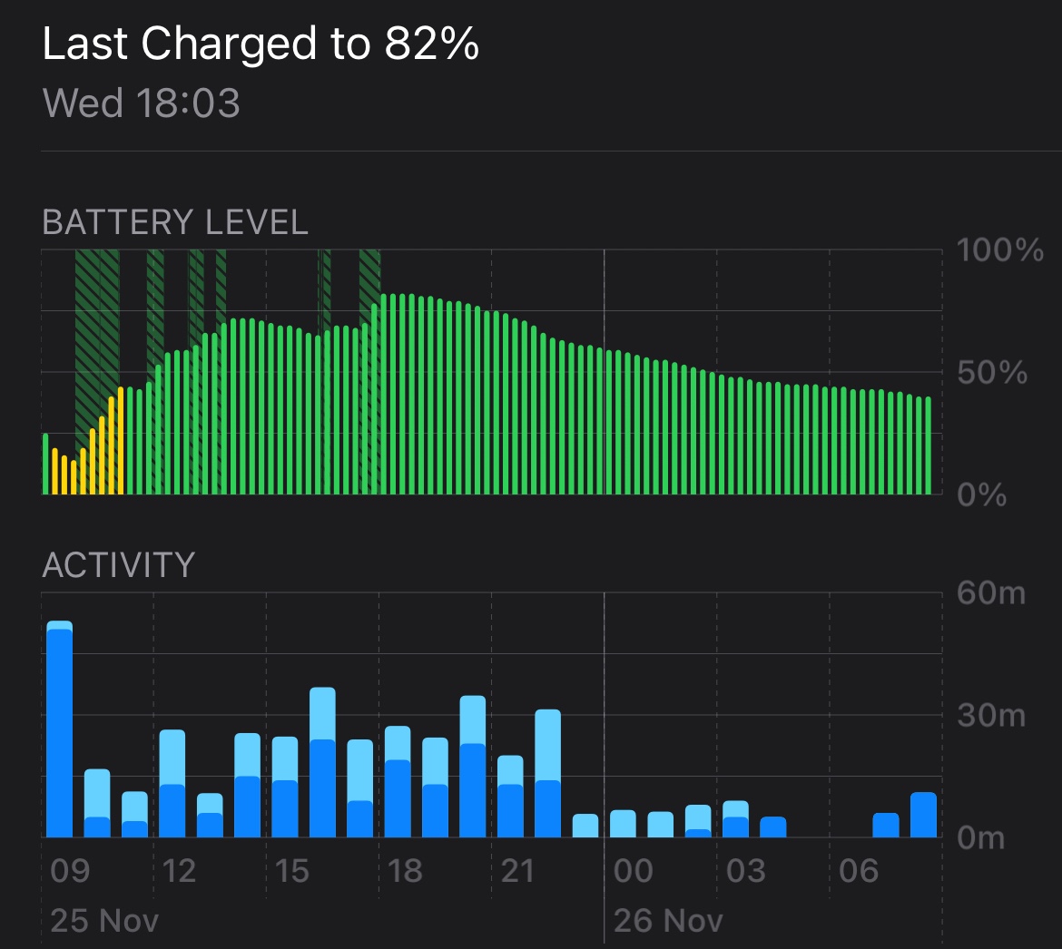 Battery drops around 10% over the same time frame (Better, but still not satisfying)