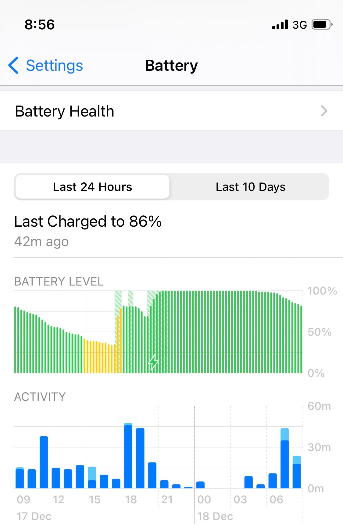 However I'm noticing that the iPhone 12 Pro is draining when idle with almost no background activity at a rate of 4% which is much faster than my previous iPhone 11 Pro, and to be honest a faster idle drain than I can actually remember from a new iPhone. First instinct was to disable Mobile data to see if it was a 5G thing, but I actually don't see any real difference from doing that (which makes sense as I've been on Wifi 98% of the time since I got it).