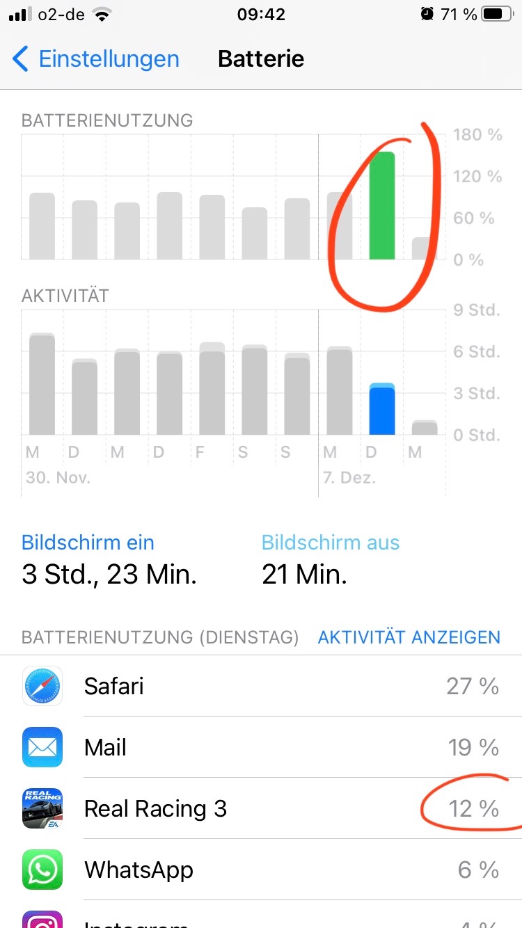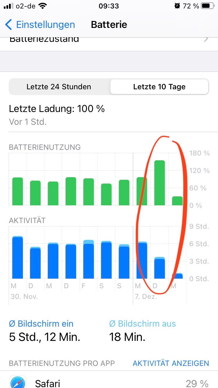 As you can see on the screen shots, one day to another the battery drained much faster even though the phone was used much less.