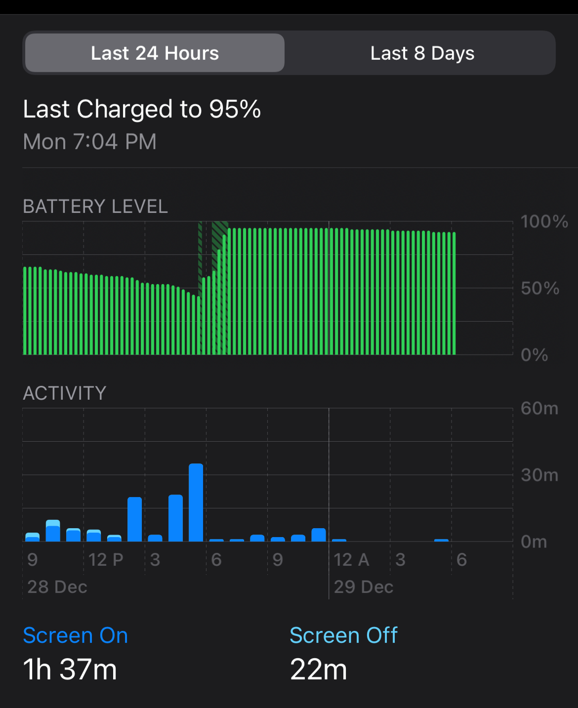Battery drops around 10% over the same time frame (Better, but still not satisfying)