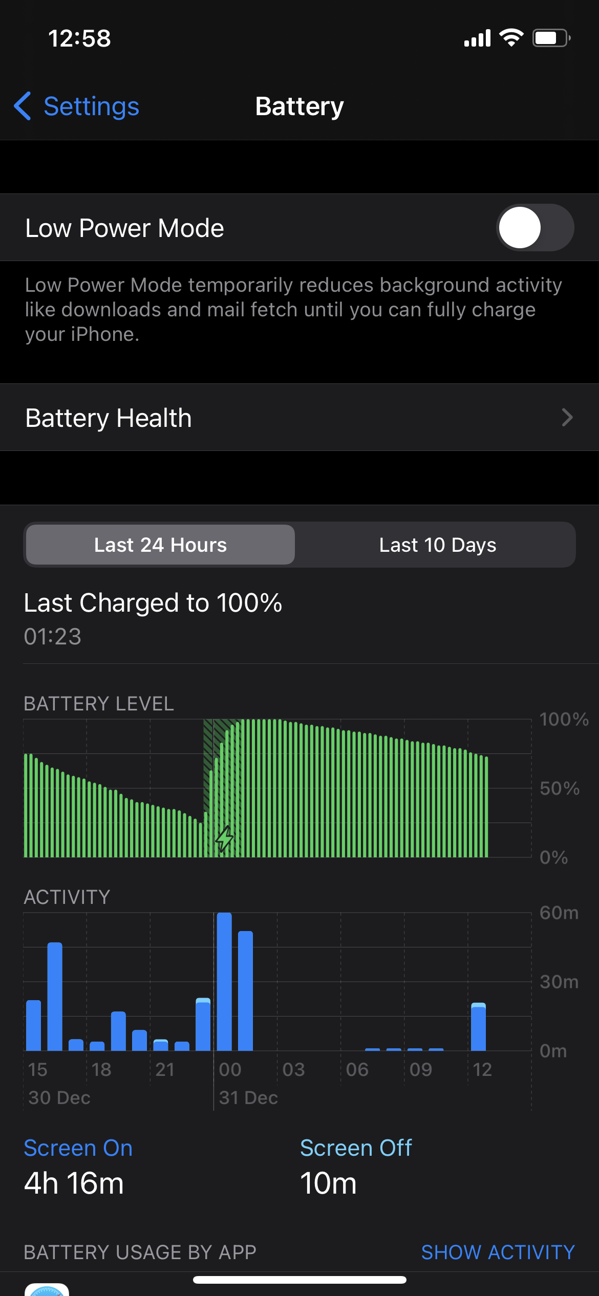 However I'm noticing that the iPhone 12 Pro is draining when idle with almost no background activity at a rate of 4% which is much faster than my previous iPhone 11 Pro, and to be honest a faster idle drain than I can actually remember from a new iPhone. First instinct was to disable Mobile data to see if it was a 5G thing, but I actually don't see any real difference from doing that (which makes sense as I've been on Wifi 98% of the time since I got it).