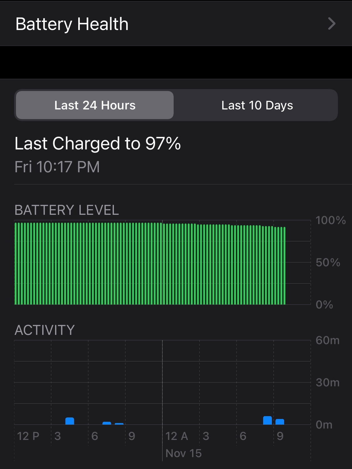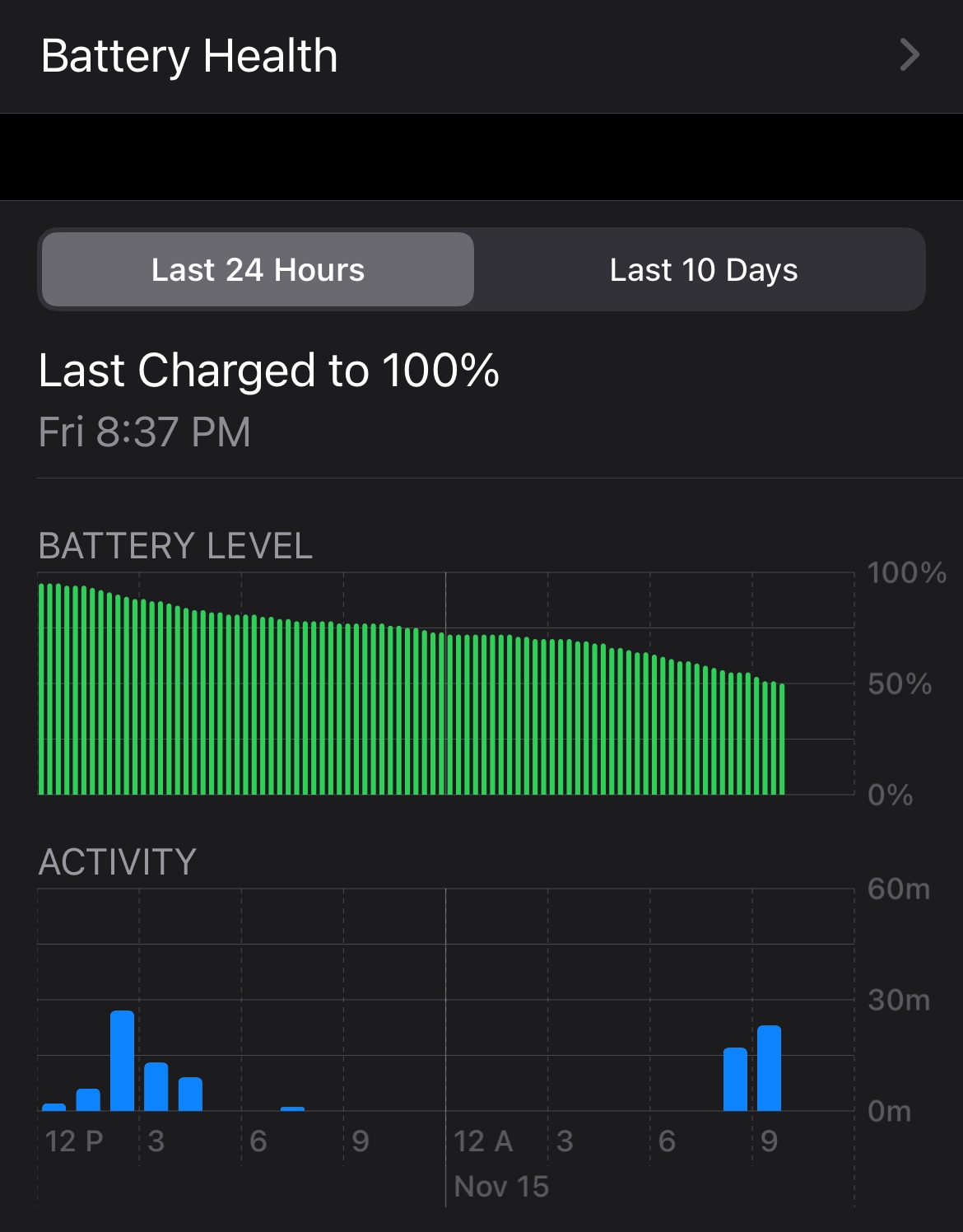 However I'm noticing that the iPhone 12 Pro is draining when idle with almost no background activity at a rate of 4% which is much faster than my previous iPhone 11 Pro, and to be honest a faster idle drain than I can actually remember from a new iPhone. First instinct was to disable Mobile data to see if it was a 5G thing, but I actually don't see any real difference from doing that (which makes sense as I've been on Wifi 98% of the time since I got it).