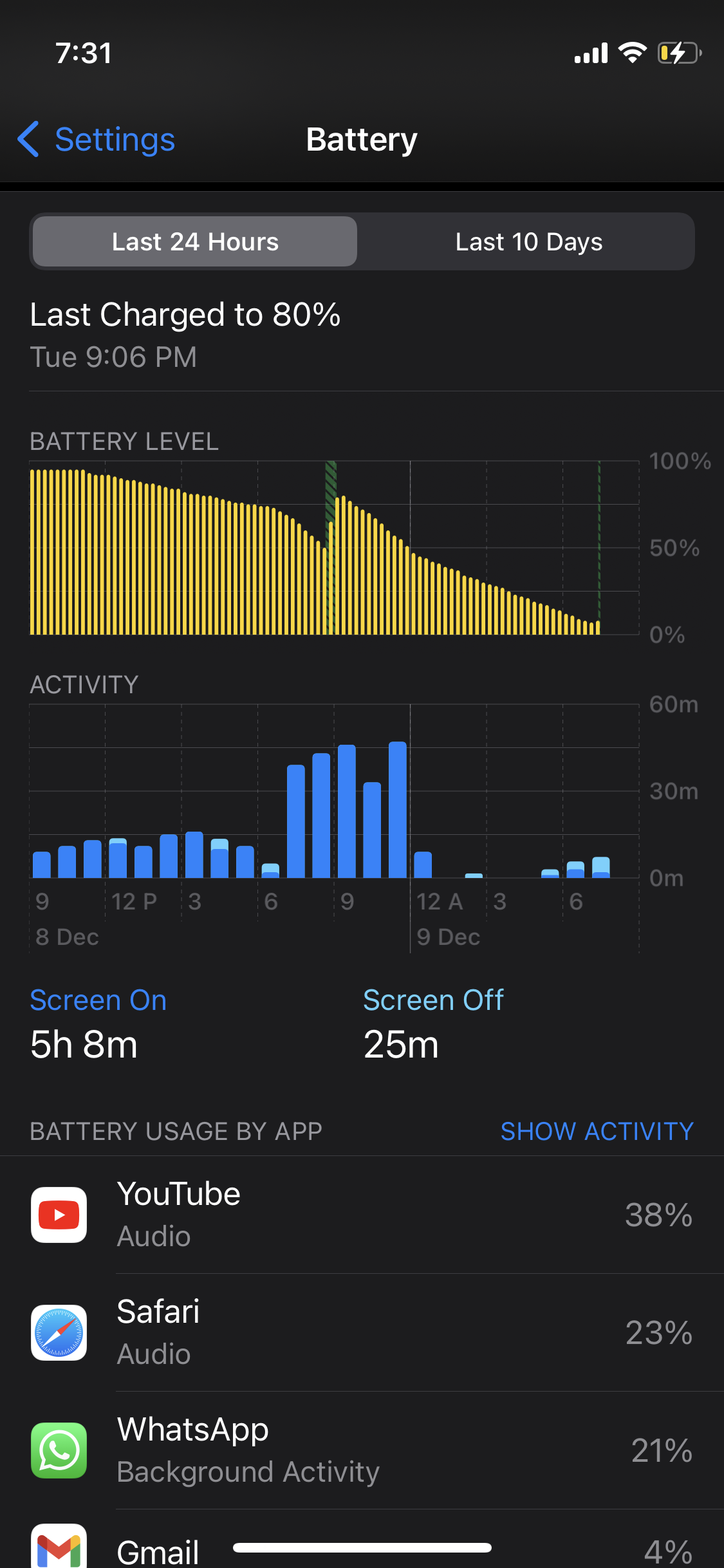Here’s what happened last night, at 11 i checked my battery was 81% and when i woke up at 8:30, my battery was at 51% with no visible activity on the graph.