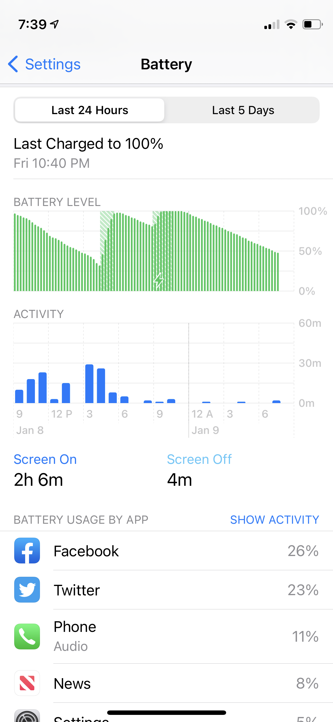 Battery drops around 10% over the same time frame (Better, but still not satisfying)