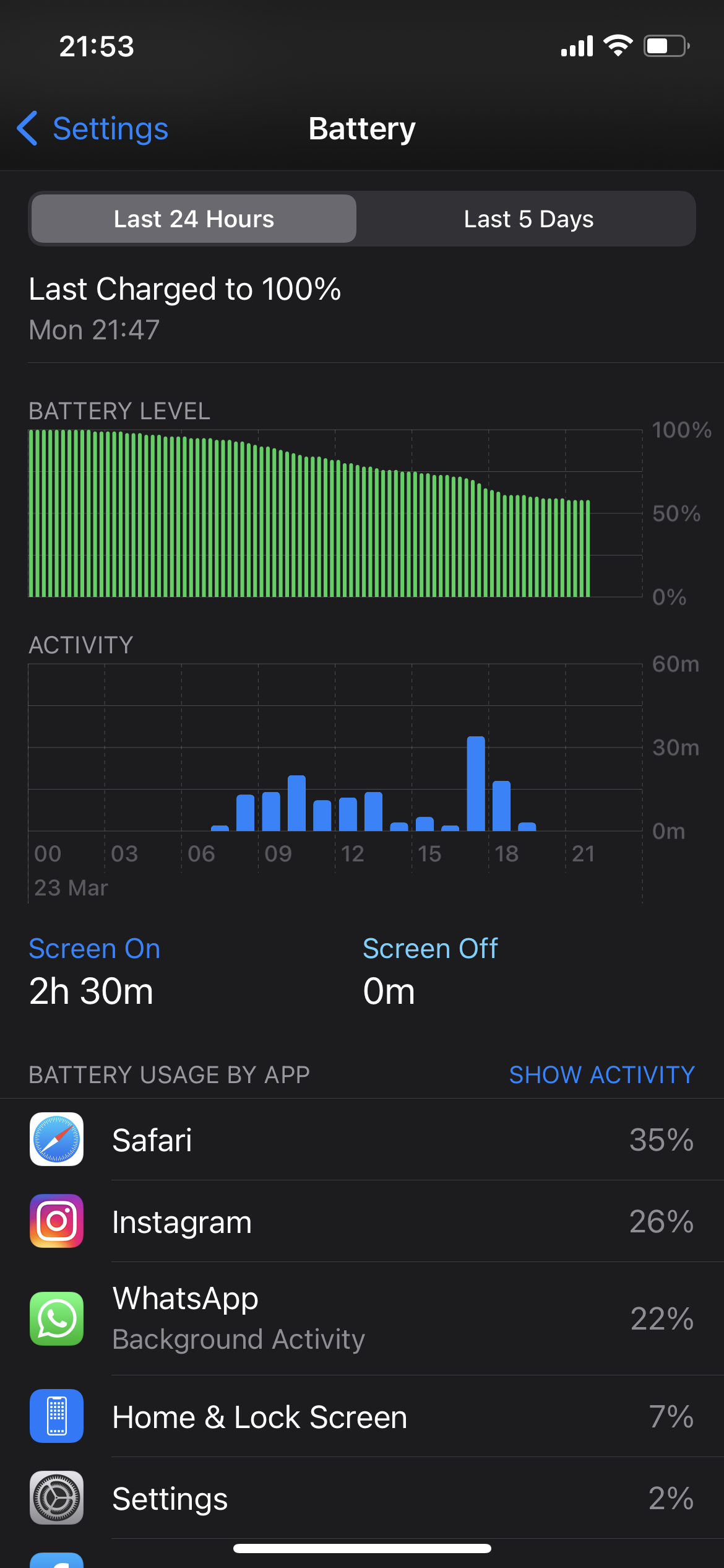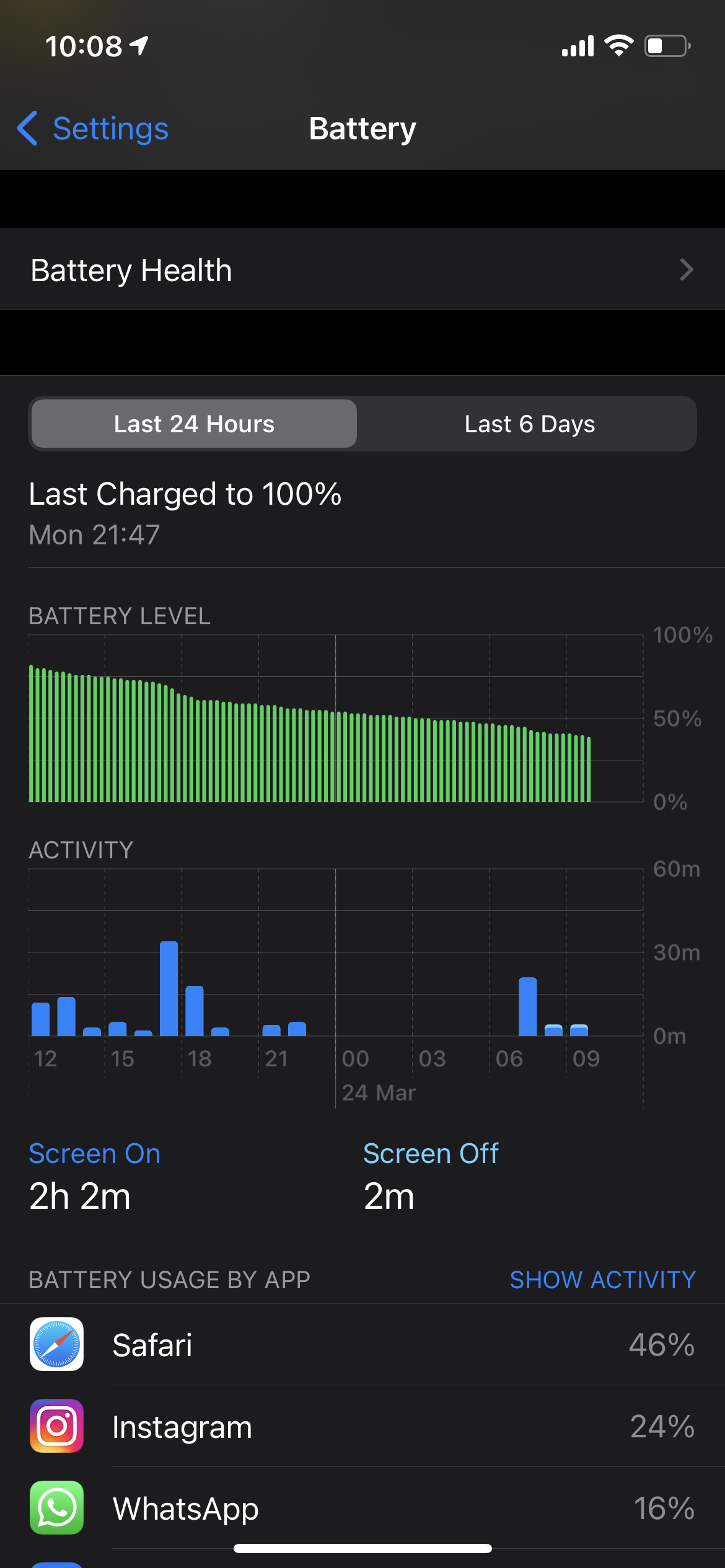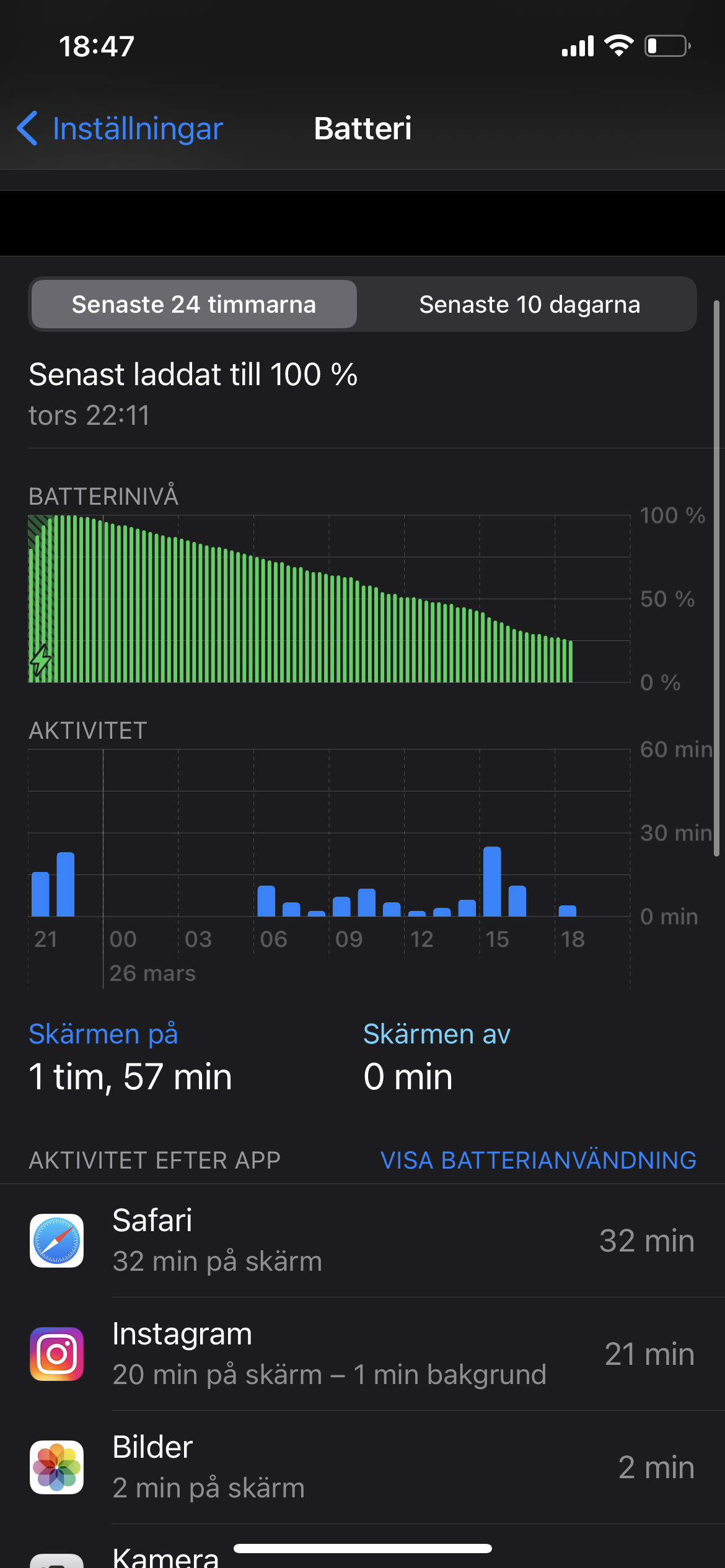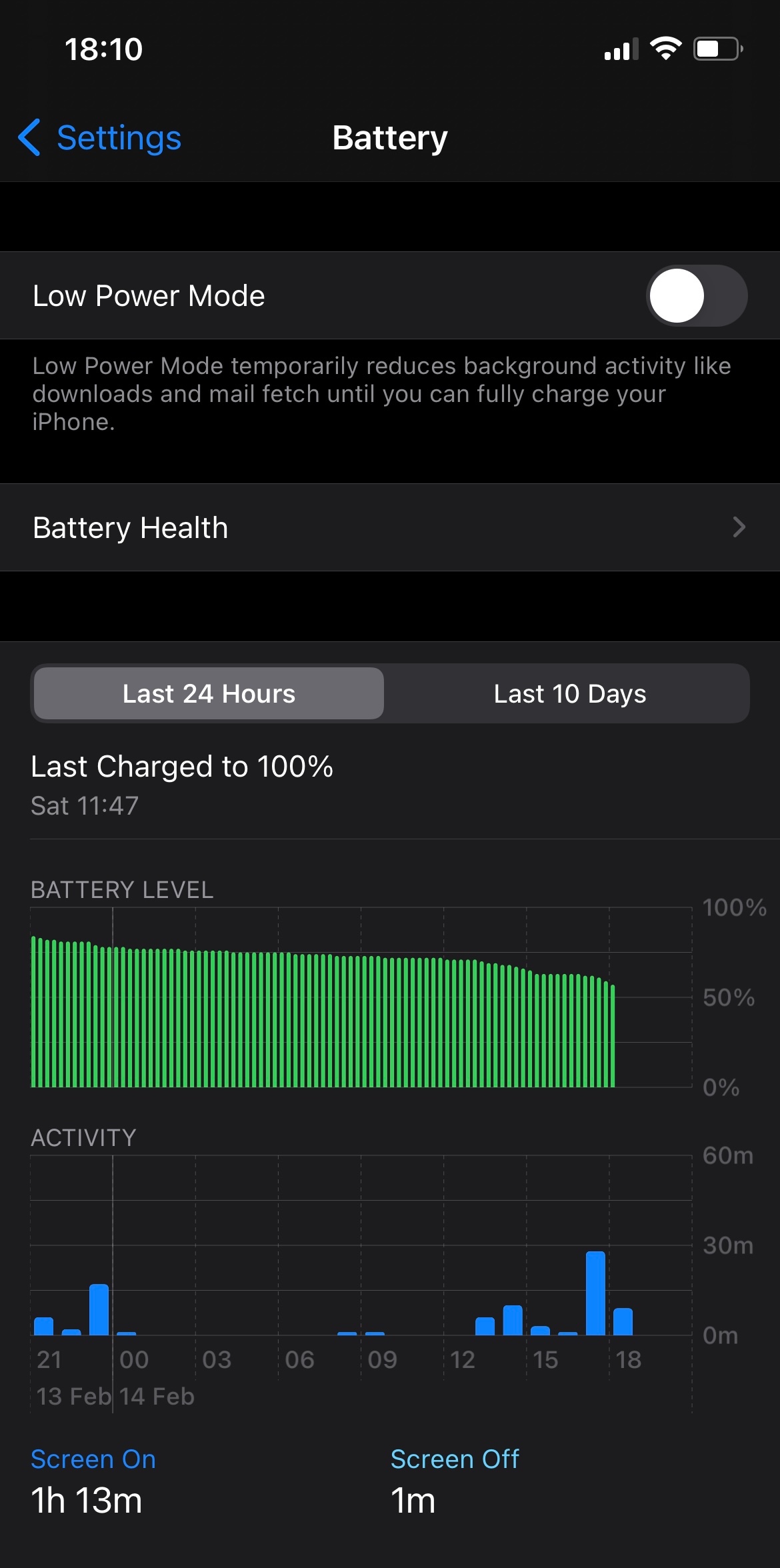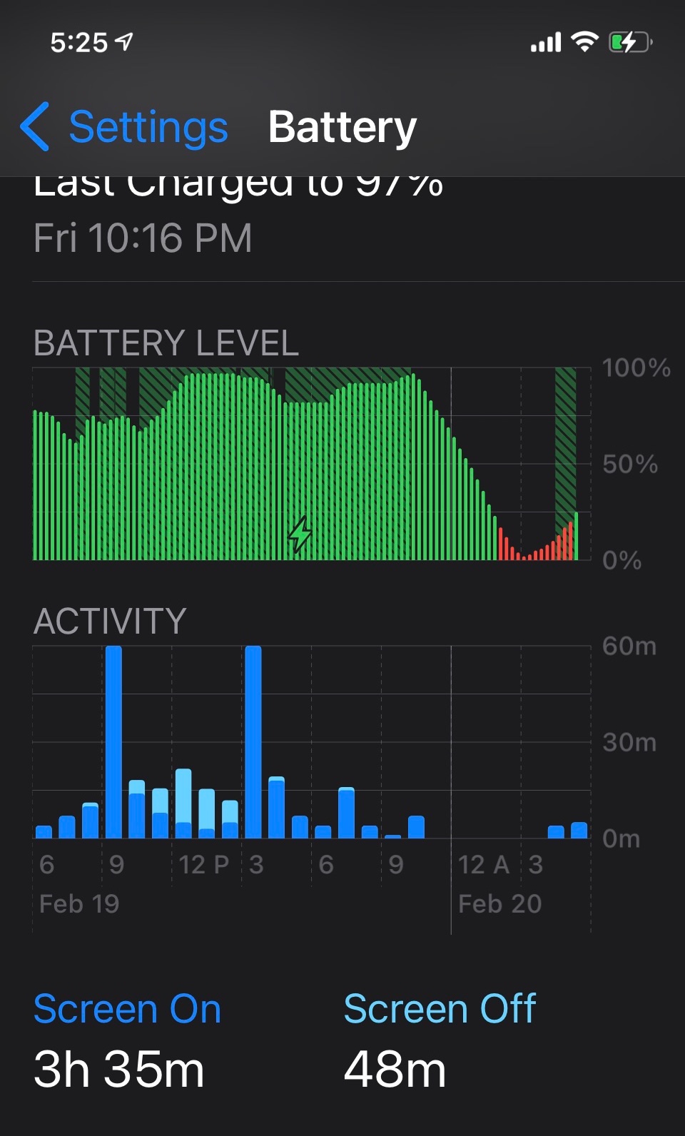 Battery drops around 10% over the same time frame (Better, but still not satisfying)