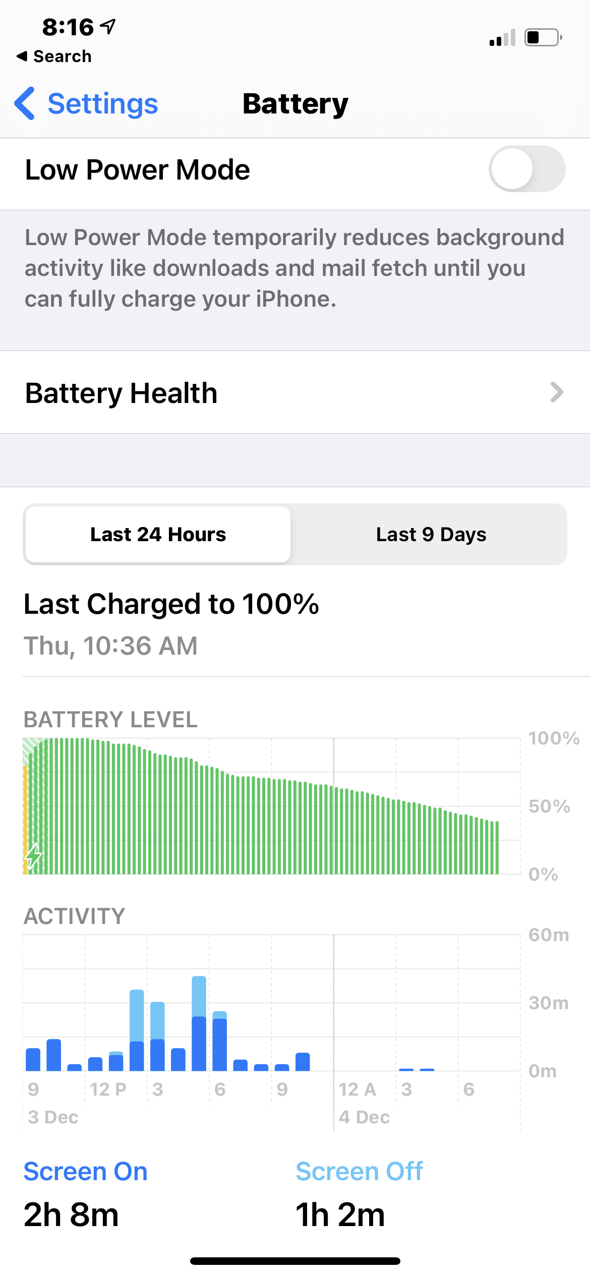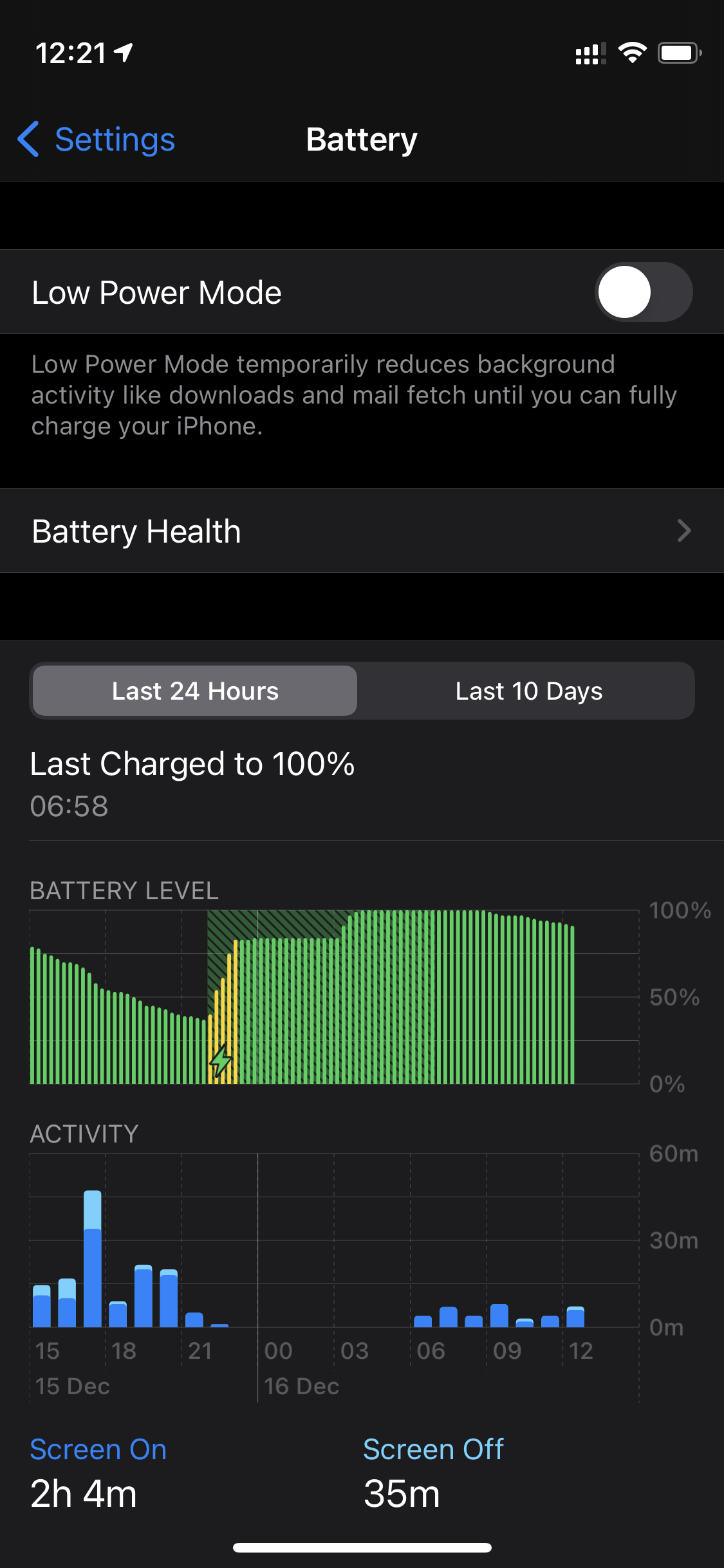 However I'm noticing that the iPhone 12 Pro is draining when idle with almost no background activity at a rate of 4% which is much faster than my previous iPhone 11 Pro, and to be honest a faster idle drain than I can actually remember from a new iPhone. First instinct was to disable Mobile data to see if it was a 5G thing, but I actually don't see any real difference from doing that (which makes sense as I've been on Wifi 98% of the time since I got it).