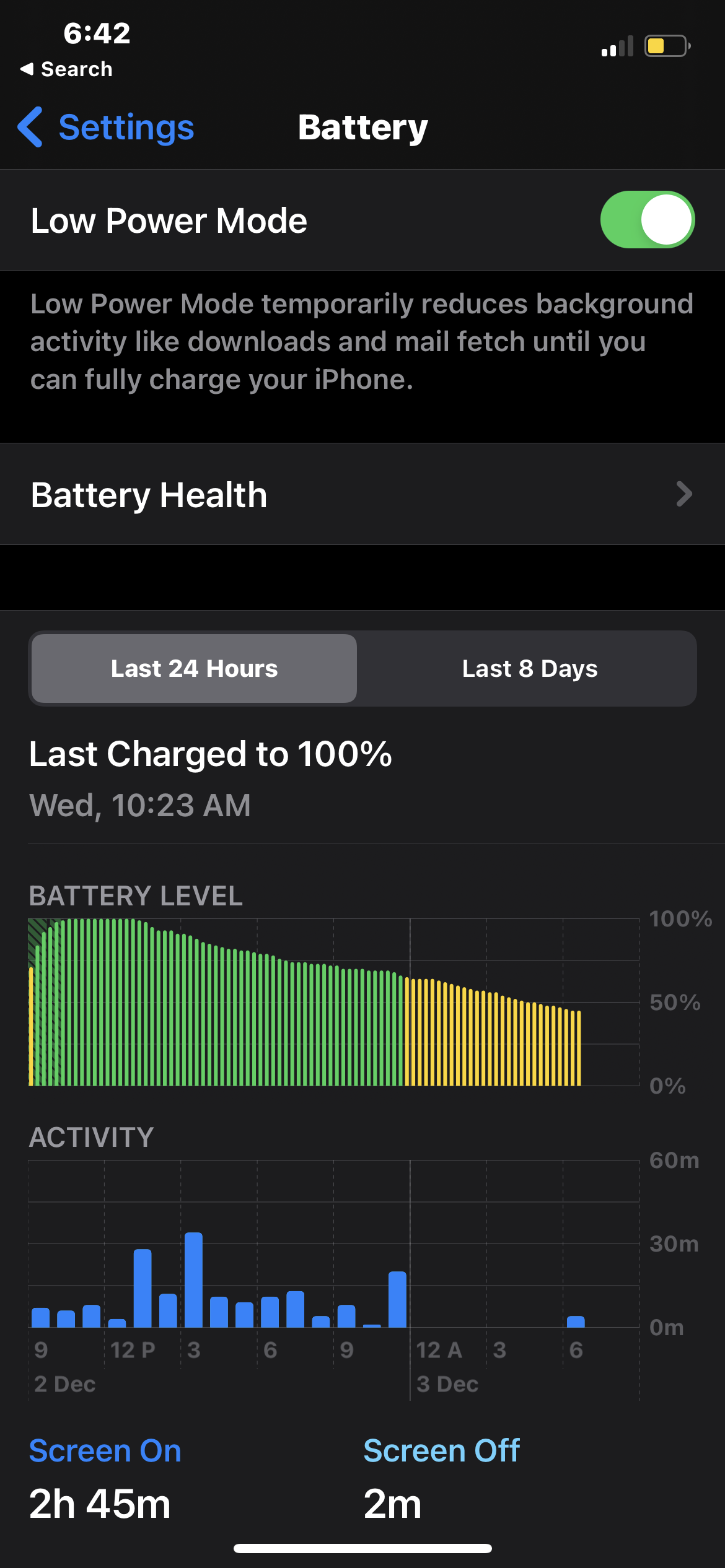 Here is the screenshot of battery graph with, and without low power mode.