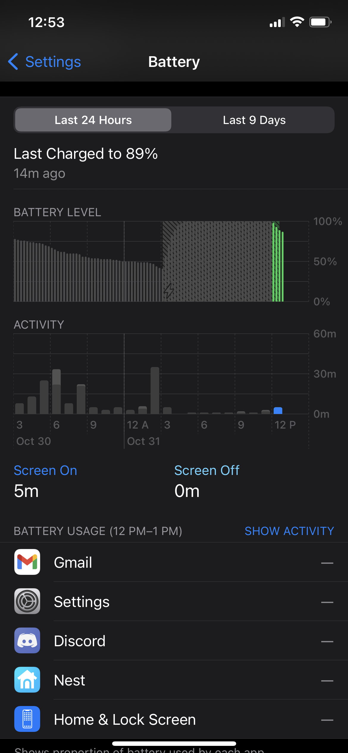 However I'm noticing that the iPhone 12 Pro is draining when idle with almost no background activity at a rate of 4% which is much faster than my previous iPhone 11 Pro, and to be honest a faster idle drain than I can actually remember from a new iPhone. First instinct was to disable Mobile data to see if it was a 5G thing, but I actually don't see any real difference from doing that (which makes sense as I've been on Wifi 98% of the time since I got it).