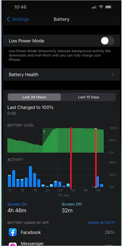 Battery drops around 10% over the same time frame (Better, but still not satisfying)