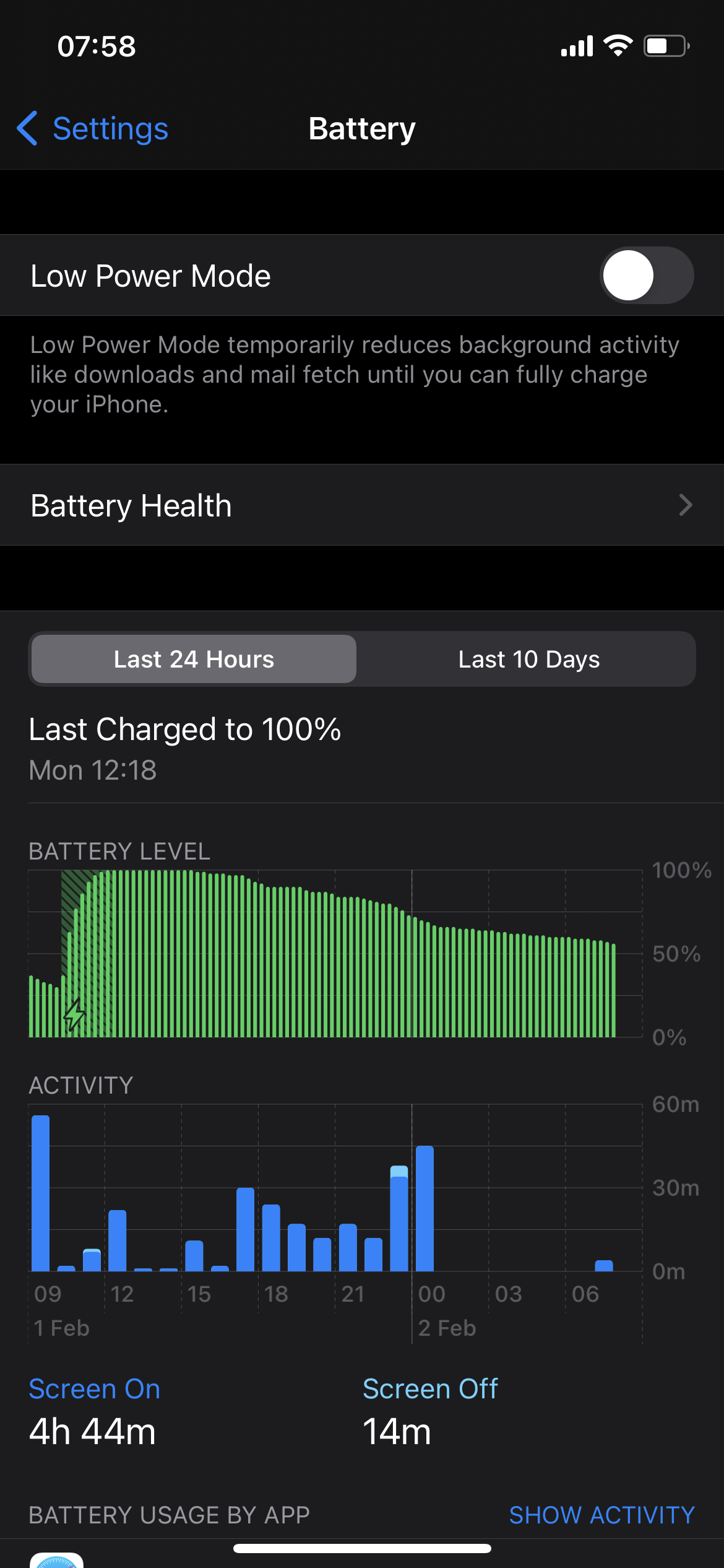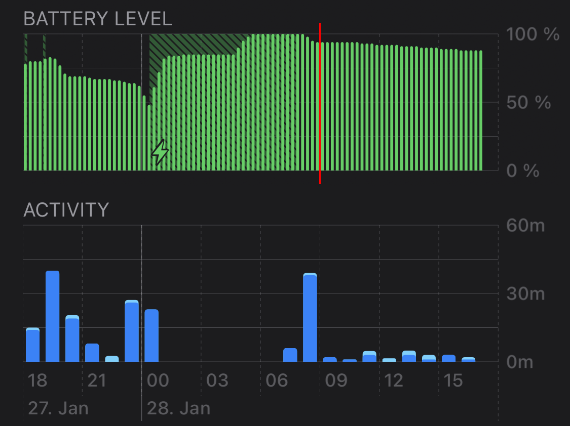 However I'm noticing that the iPhone 12 Pro is draining when idle with almost no background activity at a rate of 4% which is much faster than my previous iPhone 11 Pro, and to be honest a faster idle drain than I can actually remember from a new iPhone. First instinct was to disable Mobile data to see if it was a 5G thing, but I actually don't see any real difference from doing that (which makes sense as I've been on Wifi 98% of the time since I got it).