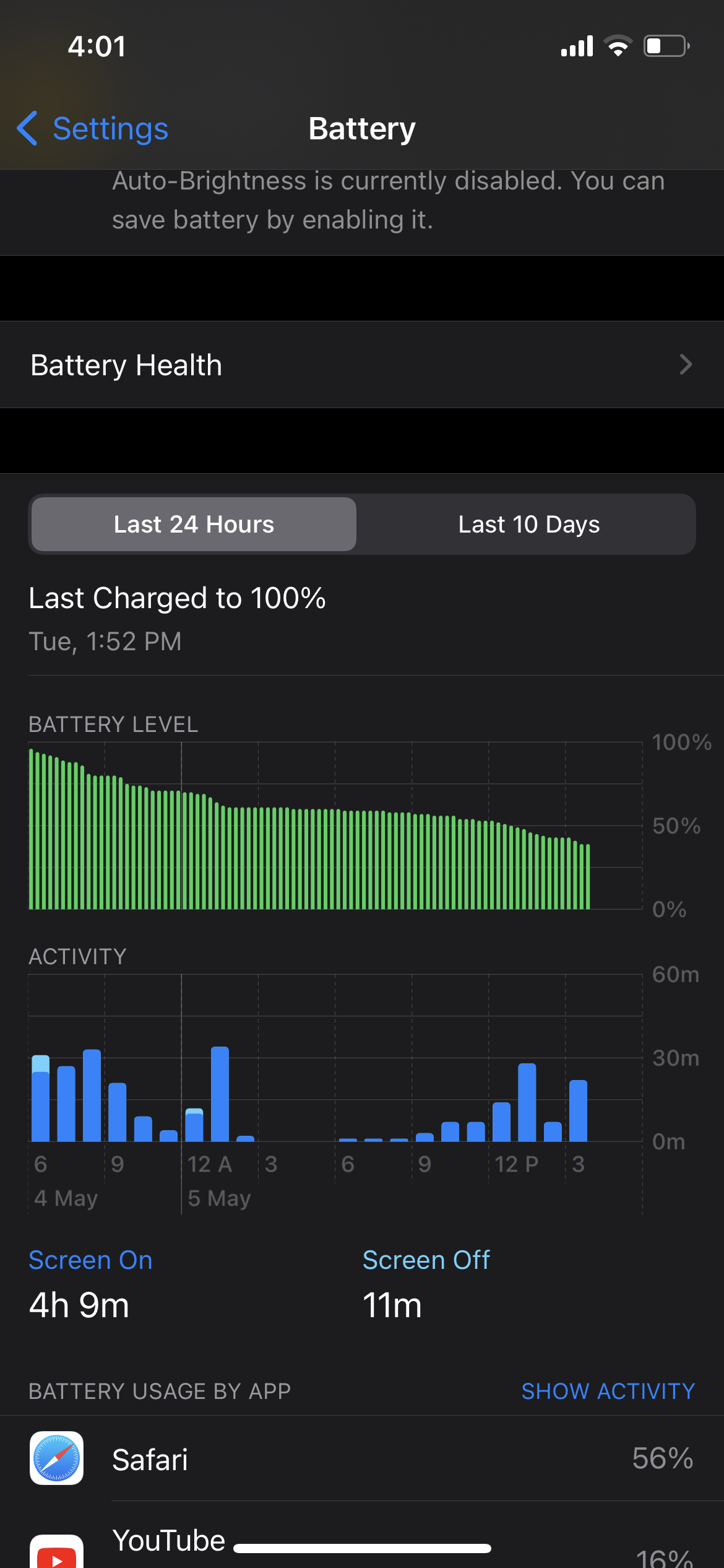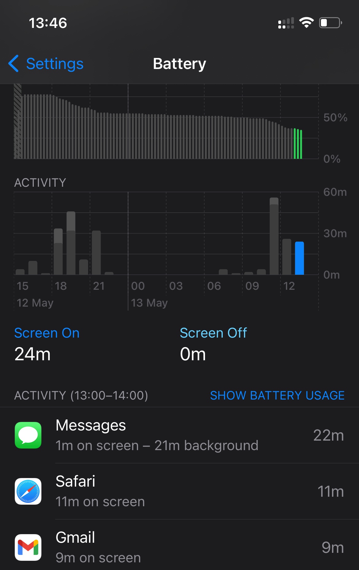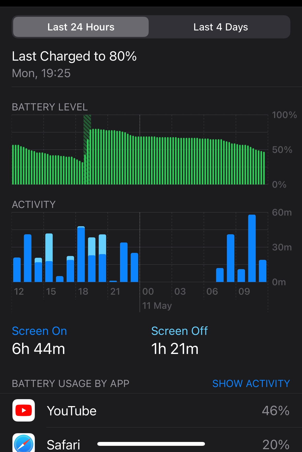 However I'm noticing that the iPhone 12 Pro is draining when idle with almost no background activity at a rate of 4% which is much faster than my previous iPhone 11 Pro, and to be honest a faster idle drain than I can actually remember from a new iPhone. First instinct was to disable Mobile data to see if it was a 5G thing, but I actually don't see any real difference from doing that (which makes sense as I've been on Wifi 98% of the time since I got it).