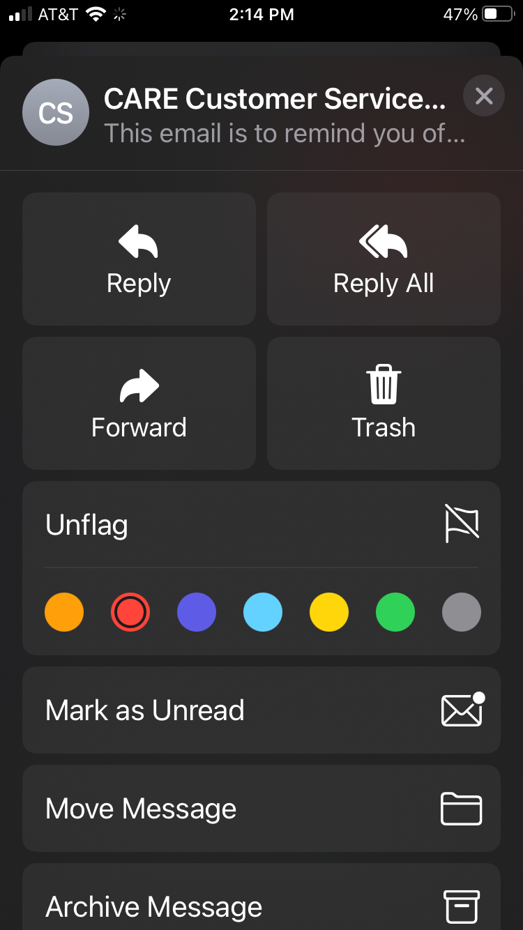 IOS 14 Mail Flag Colors, Change from selected color back to red.